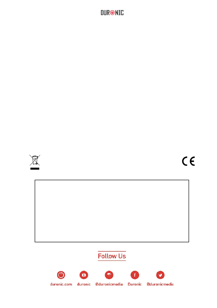 Duronic Products are offered with a 1 year guarantee under the following conditions: