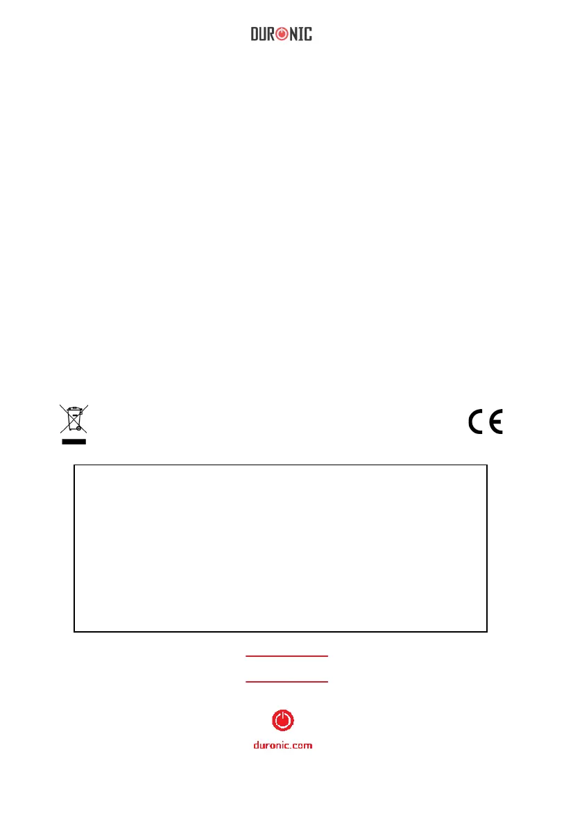 Duronic Products oferuje jeden rok gwarancji na podstawie poniższych warunków:
