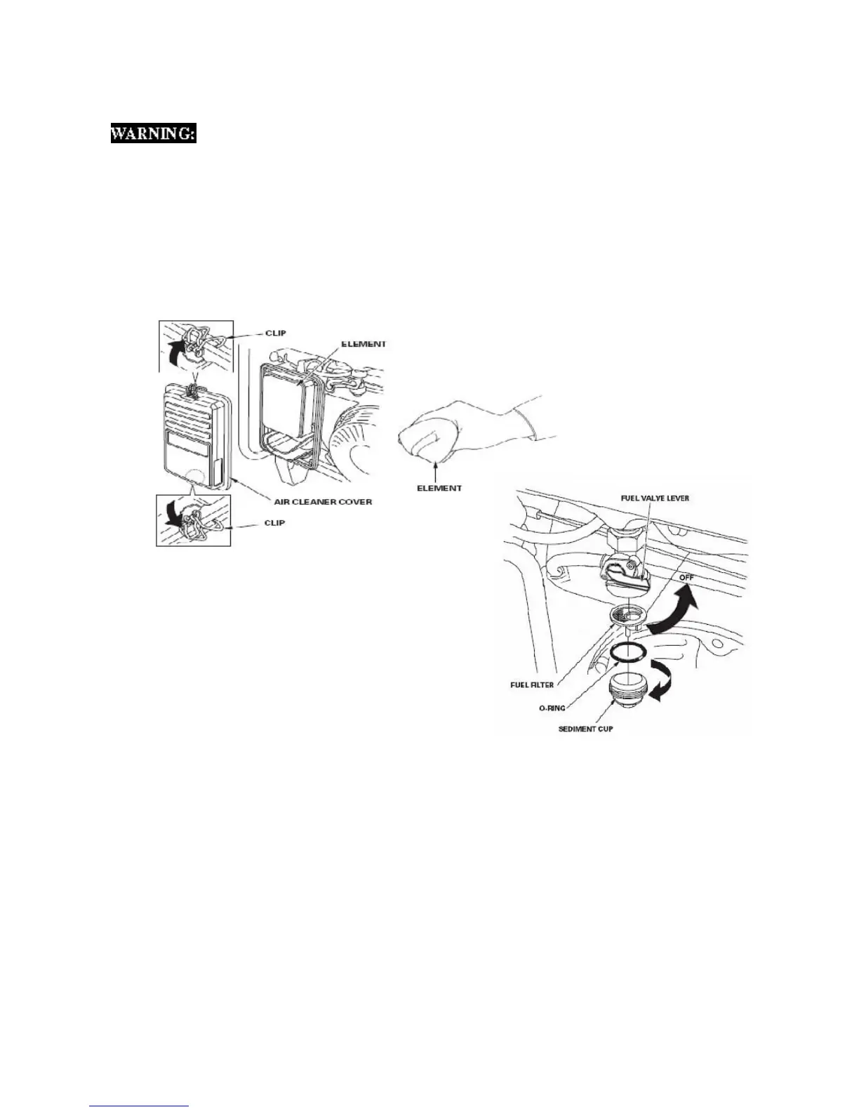 1 Turn the fuel valve lever to the OFF position.
