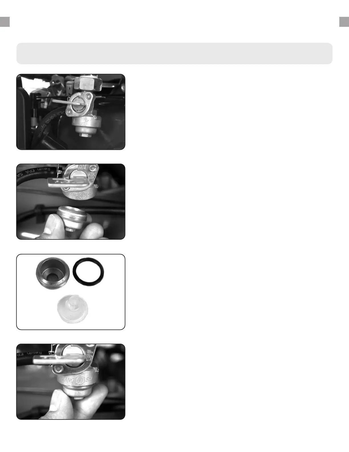 Unscrew the fuel lter cup from the fuel valve using a wrench.