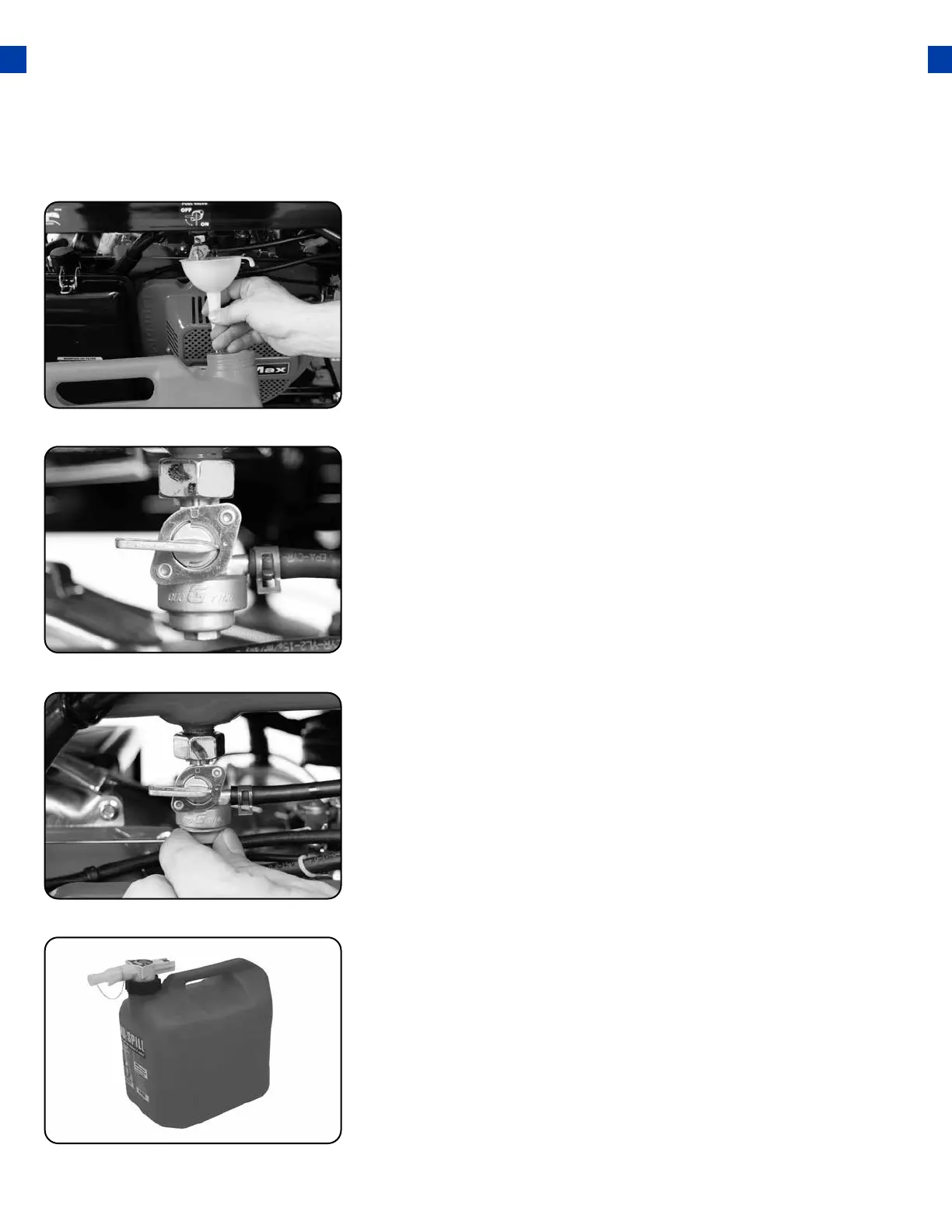 the fuel valve to the “ON” position. Drain all the gas from the