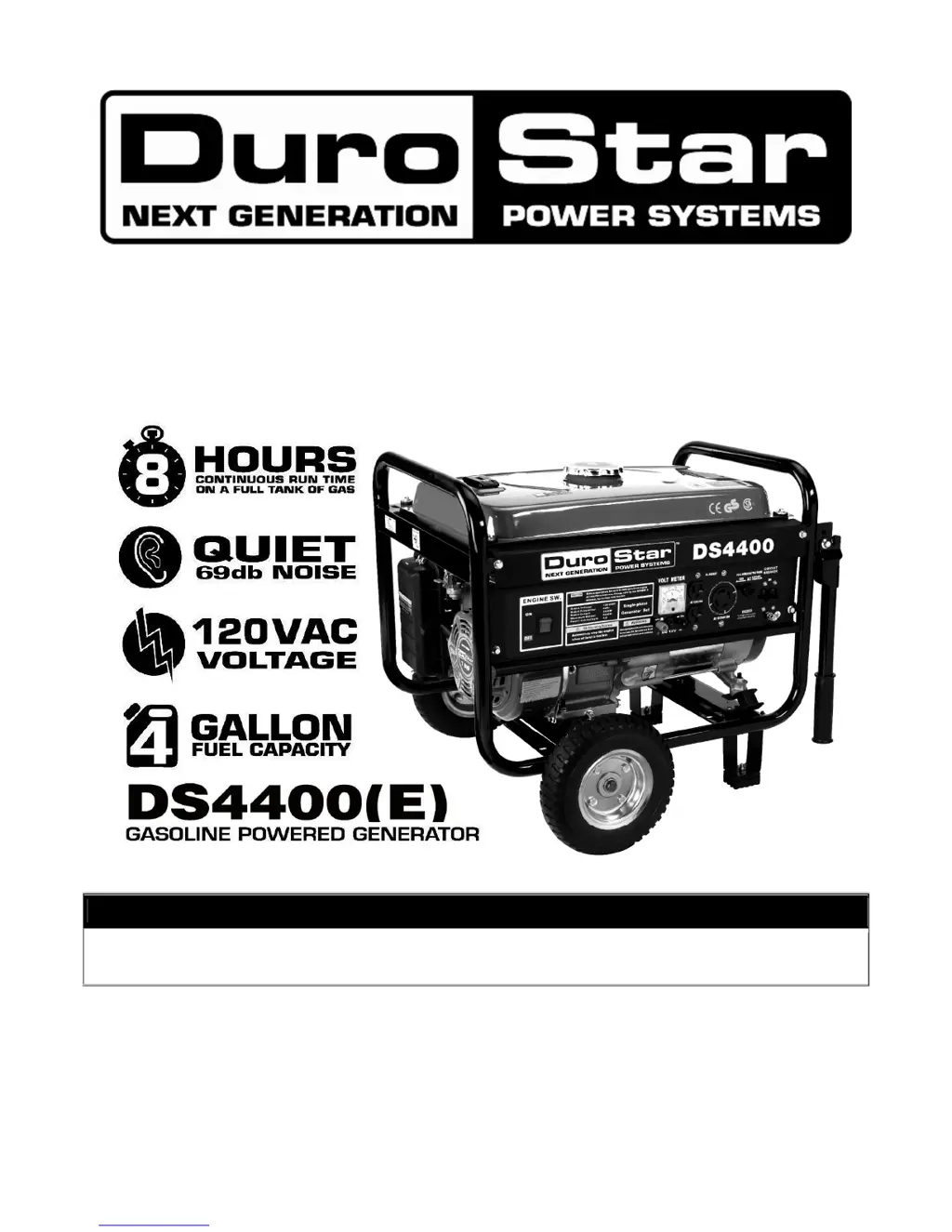 If your DuroStar Portable Generator's engine won't start, several factors could be at play. First, ensure the engine switch is set to the “ON” position. Next, verify that the fuel valve is in the “OPEN” position. Also, make sure the choke is closed. Check the fuel level; if it’s low, add gas, or if the gas is old or contaminated, replace it. Inspect the spark plug for dirt and clean it, or replace it if broken. Ensure the generator is on a level surface to prevent the low oil shutdown from activating. Finally, check the oil level and add or replace oil if necessary.