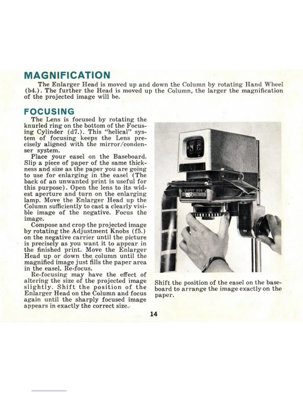 Durst 606 - Magnification; Focusing