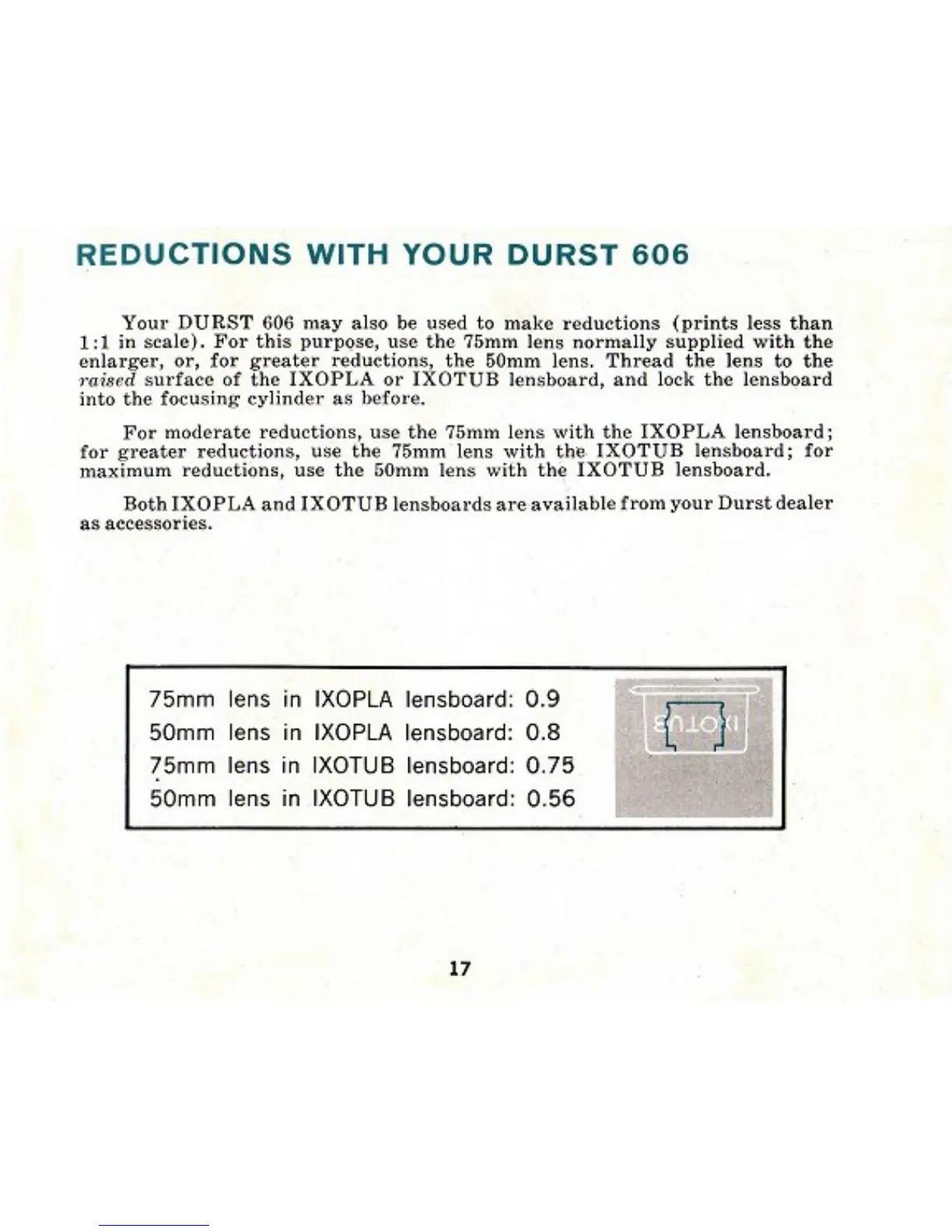 Durst 606 - REDUCTIONS WITH YOUR DURST 606