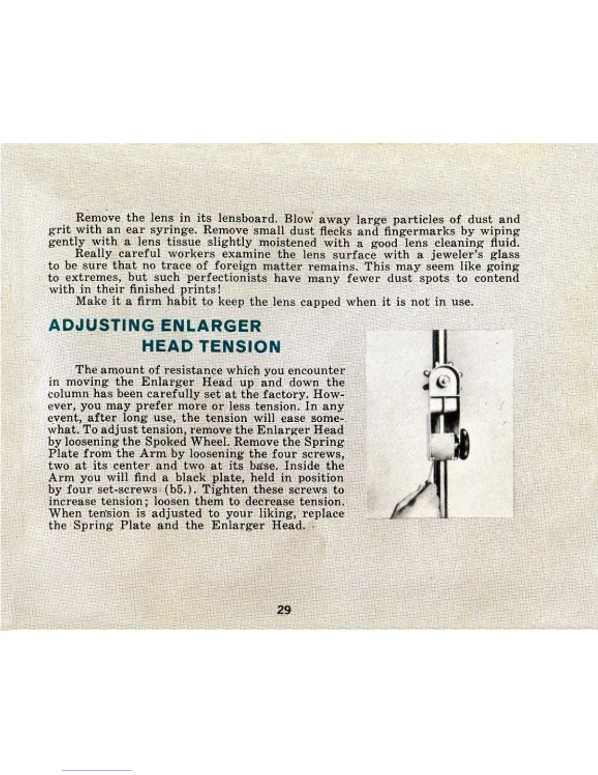 Durst 606 - ADJUSTING ENLARGER HEAD TENSION