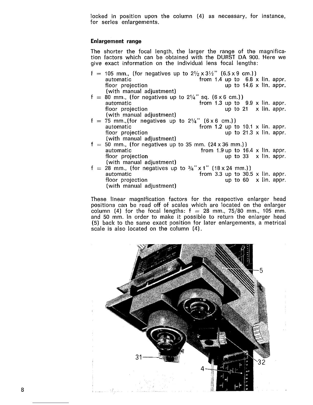 Durst DA-900 - Enlargement Range Specifications