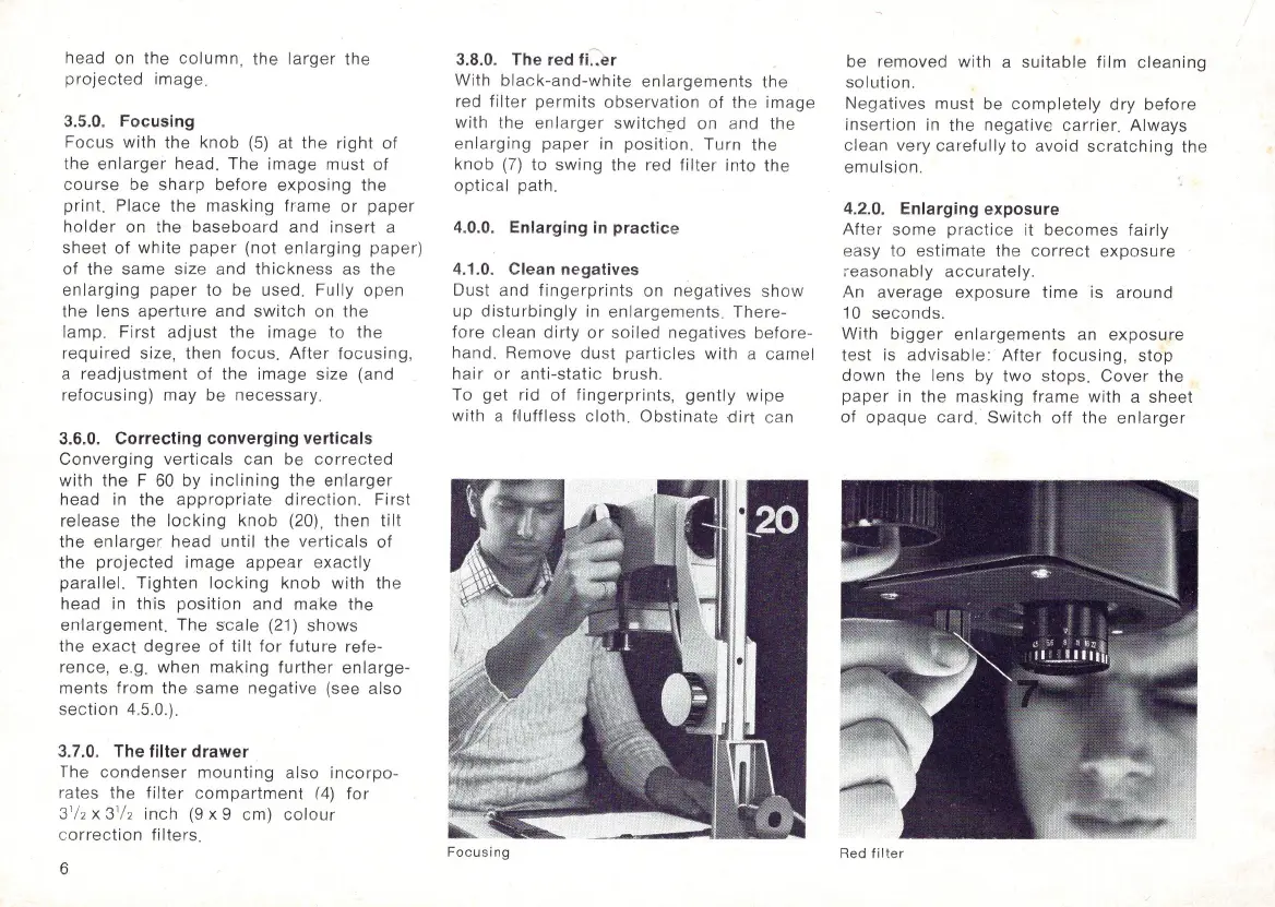 Durst F60 - Focusing; Correcting Converging Verticals; The Filter Drawer; Enlarging in Practice