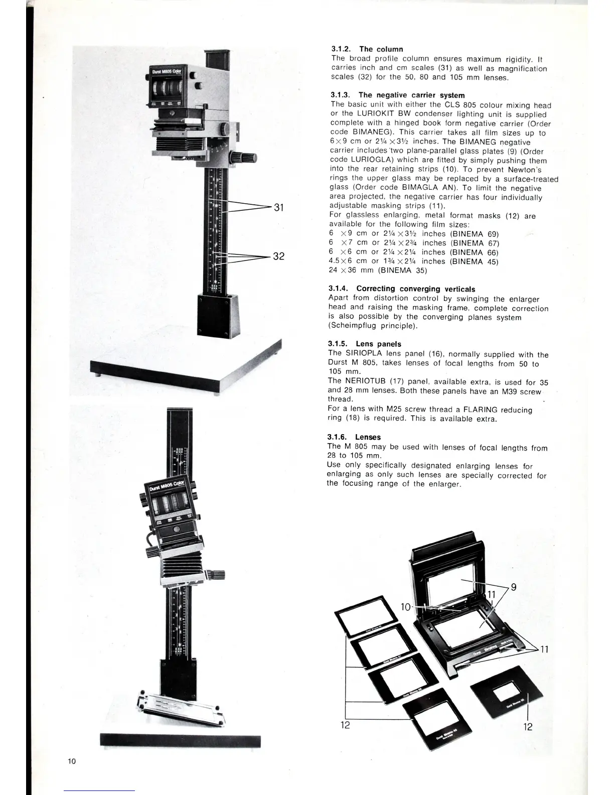 Durst M 805 - Features of the Basic Durst M 805 Unit; Basic Unit Features: Baseboard, Column, and Carriers