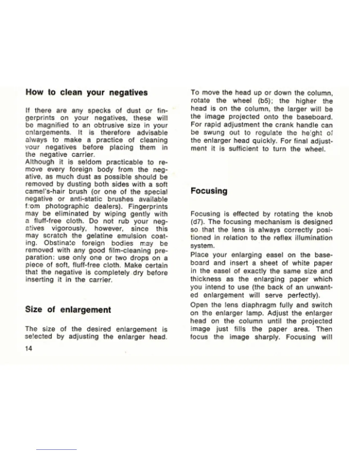 Durst M600 - DURST M600 Negative Cleaning; DURST M600 Focusing Guide
