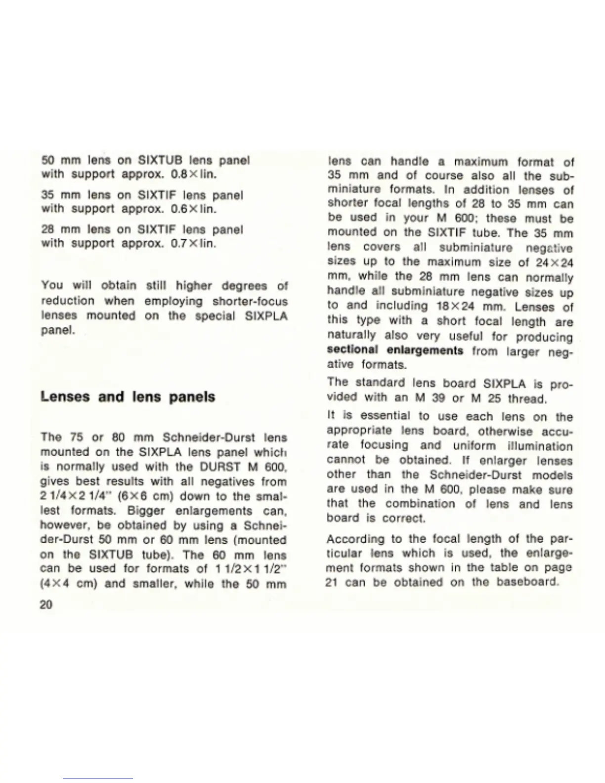 Durst M600 - DURST M600 Lenses and Panels