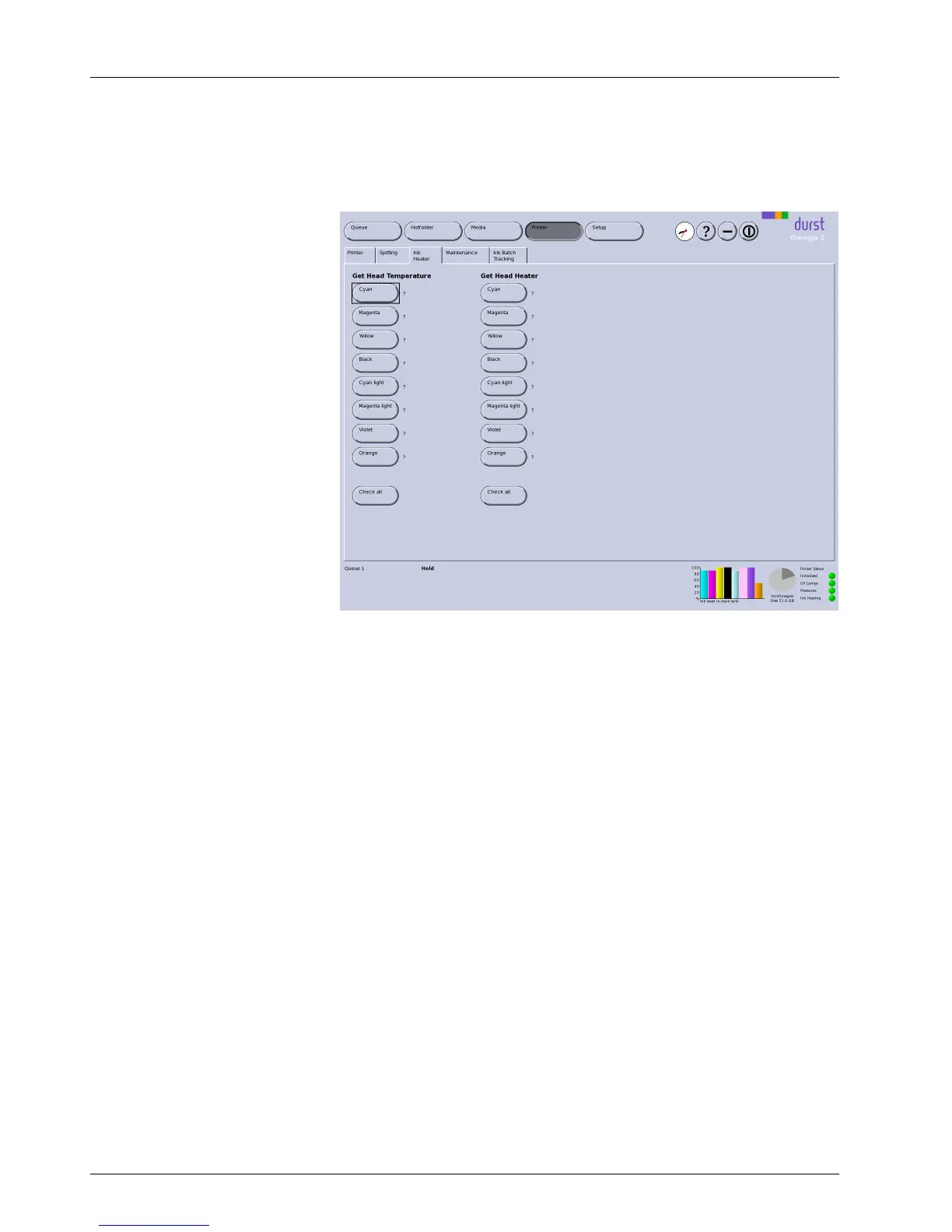 Calling up print head heat ing When clicking the respective button, the current status of the print head