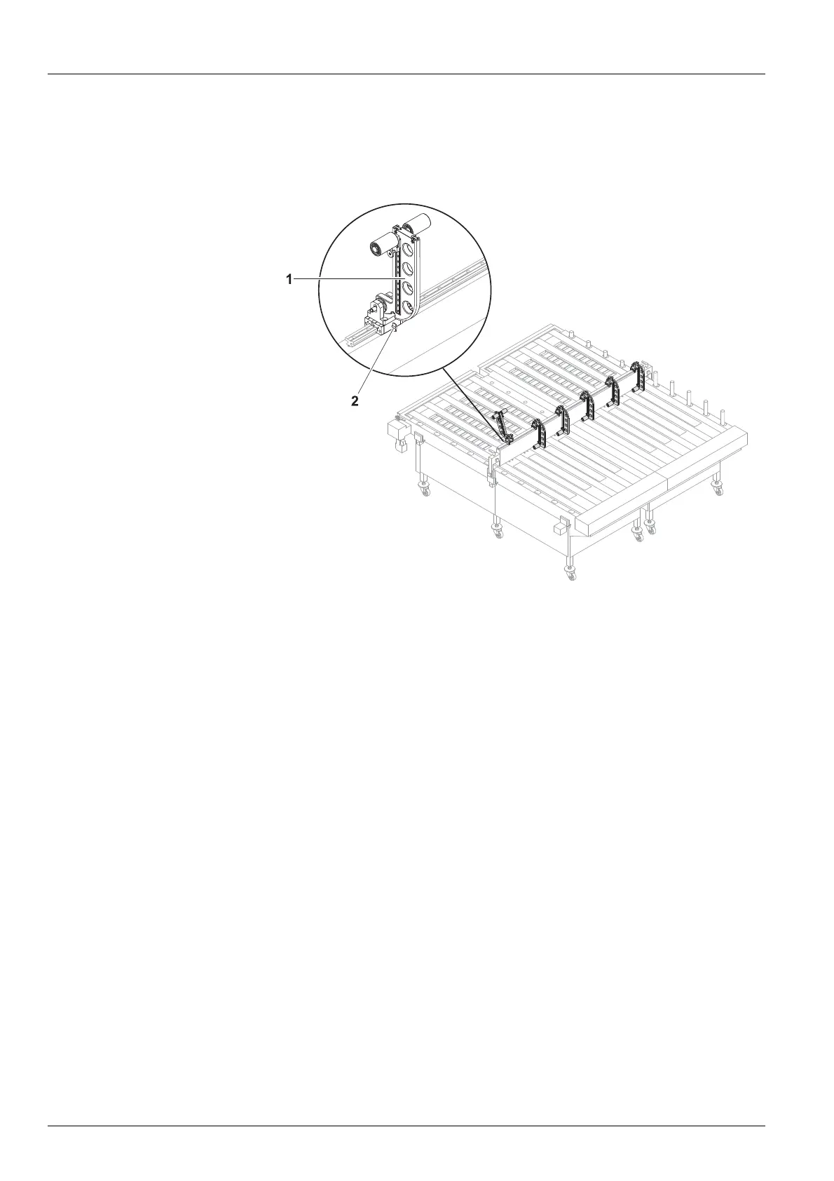 1. Carry out the following steps to adjust the swivel stops (1) to the width