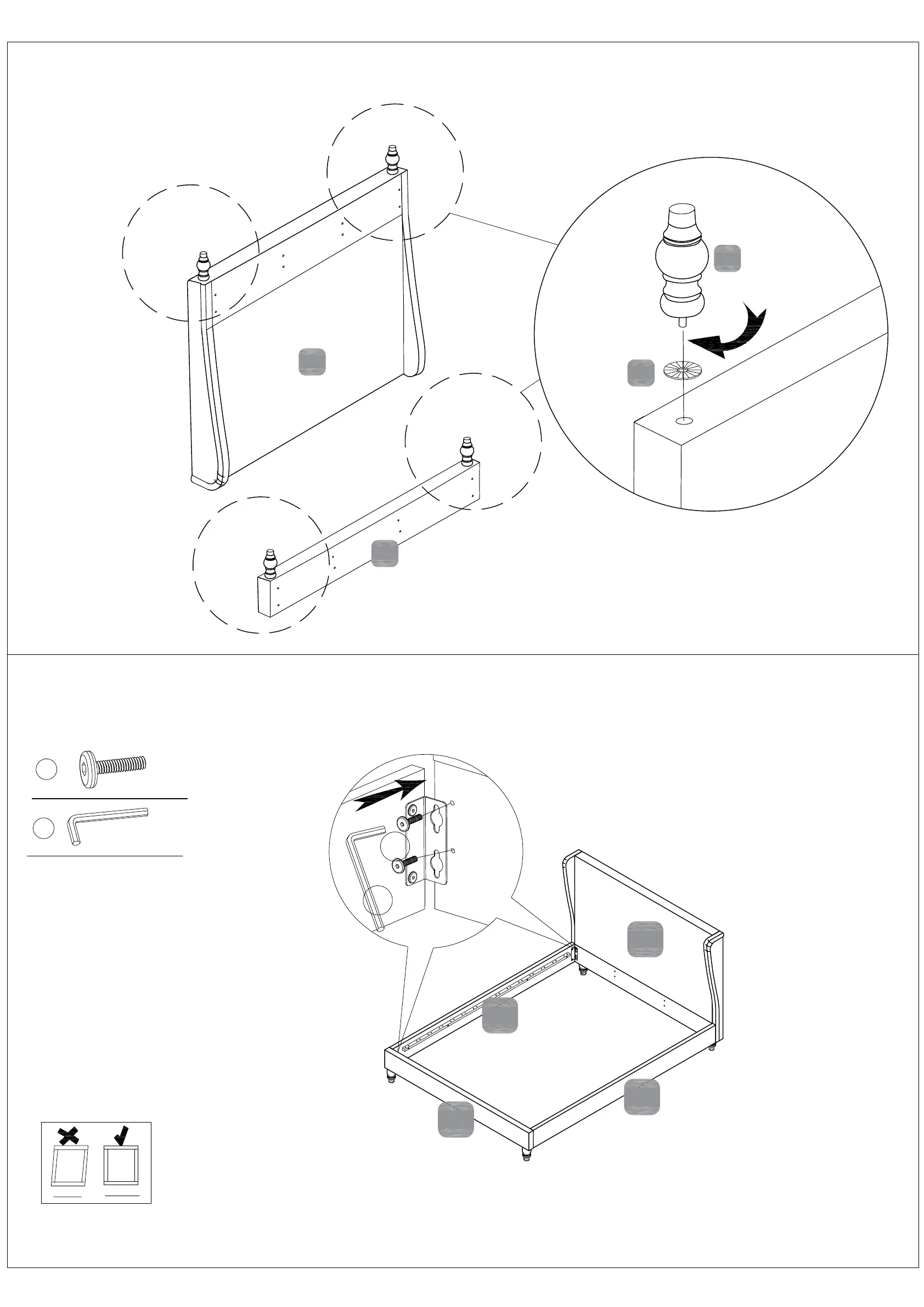 NB: Before tightening the bolts, please ensure the bed frame is square