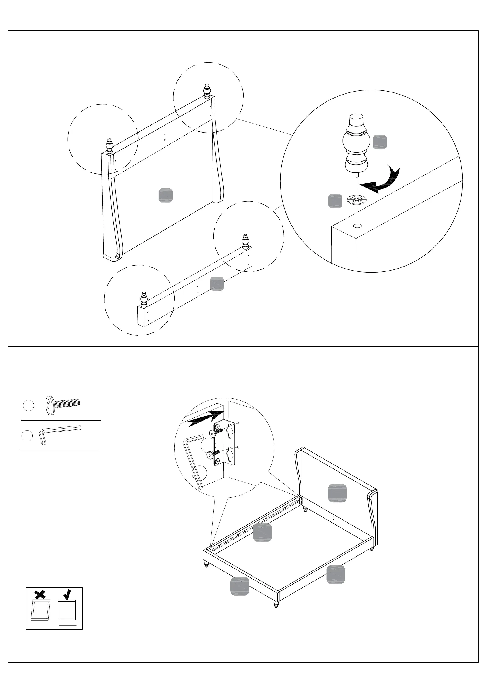 DUSK Berkeley Bed Frame - Step 1: Screwing the Legs to the Headboard & Footboard; Step 2: Attaching the Side Rails to the Headboard and Footboard