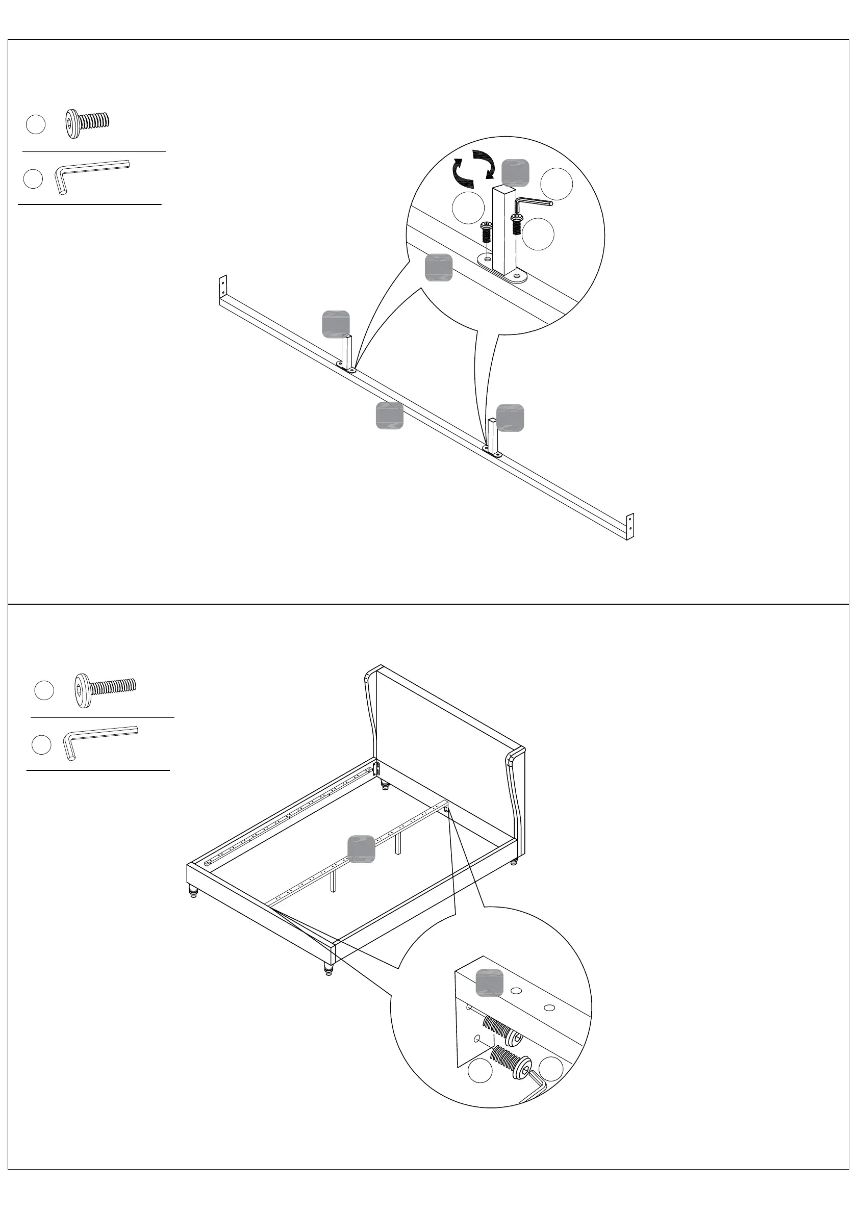 DUSK Berkeley Bed Frame - Step 3: Attaching the Central Support Legs to the Central Support Rail; Step 4: Attaching the Central Support Rail to the Headboard & Footboard