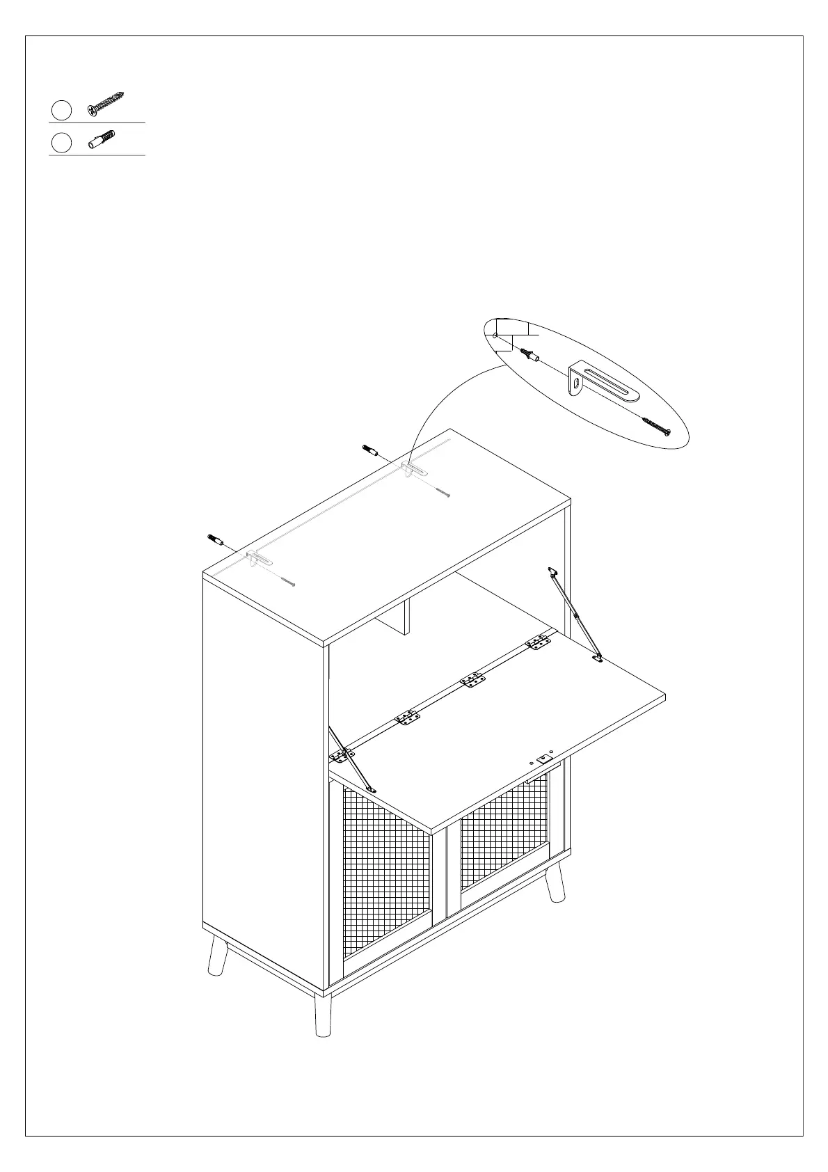 Drill holes on your wall and install anti-tipping device as shown.