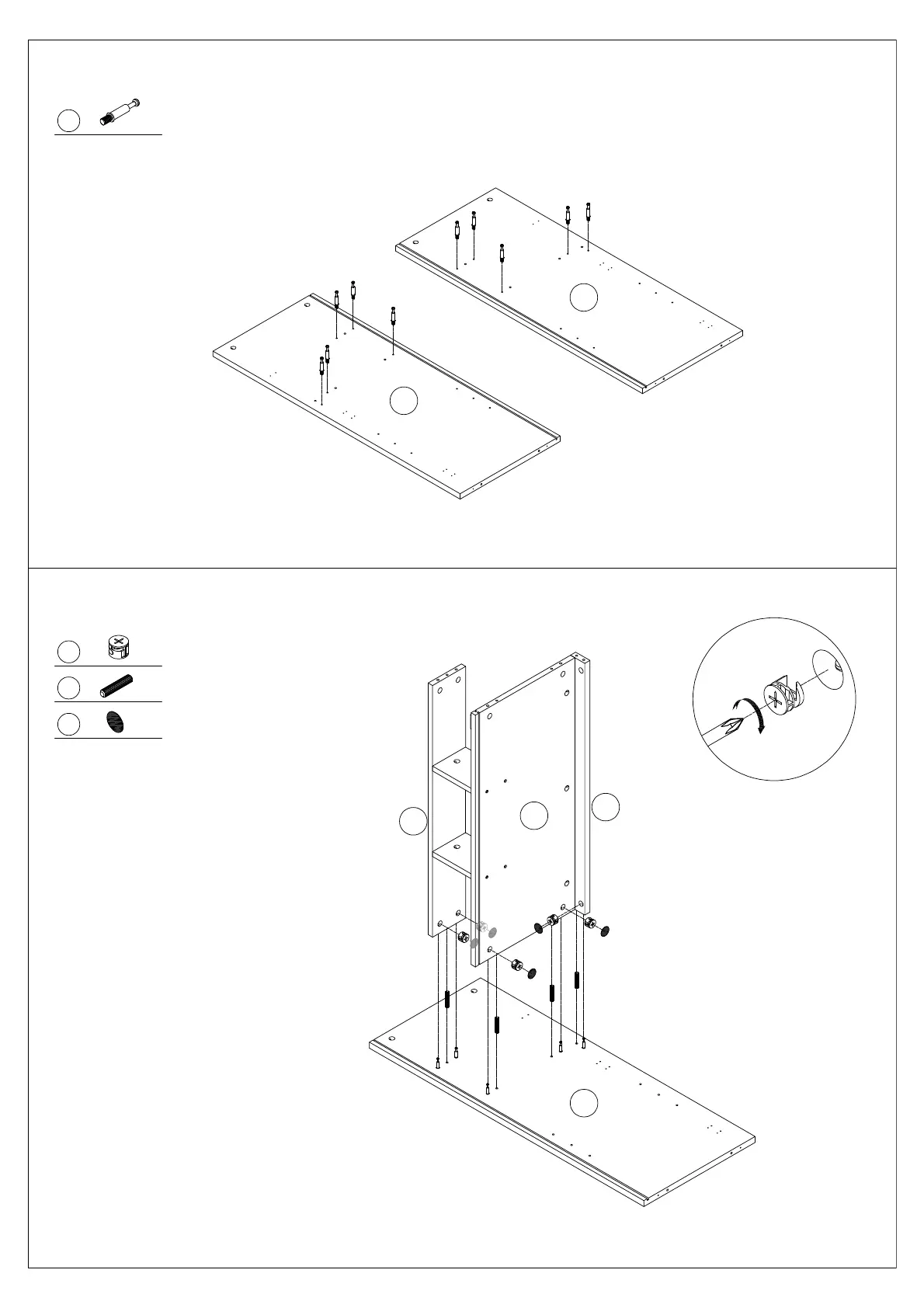 Fix cam bolt(A) to the board 2 and board 3 as shown.