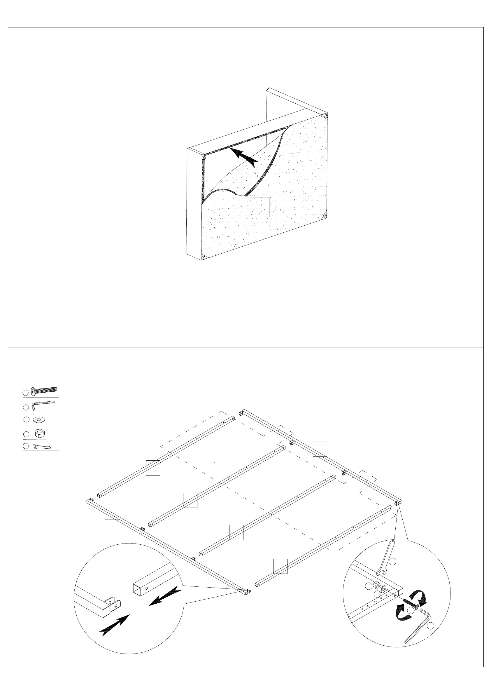 twist. Lift and turn the bed frame on its side holding the bed upright for safety. Attach the Fabric Base (16)