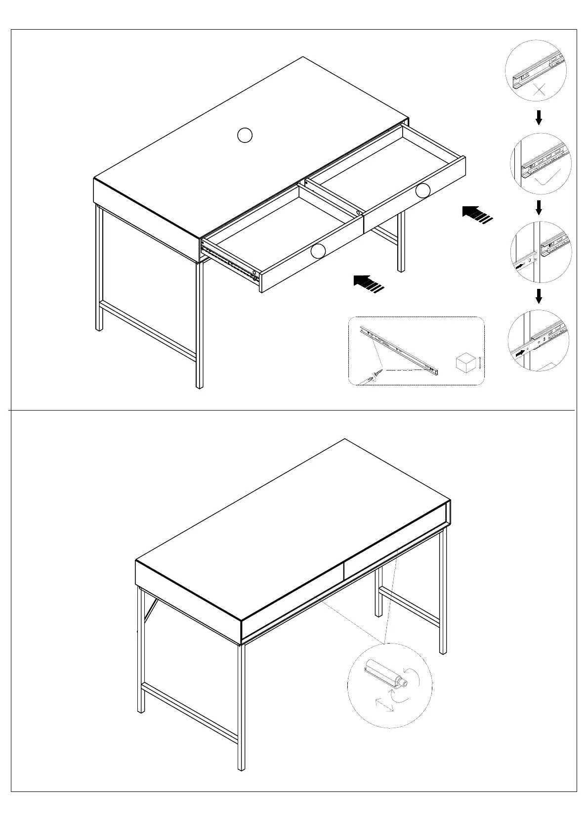 17. Assemble the drawers in the desk .