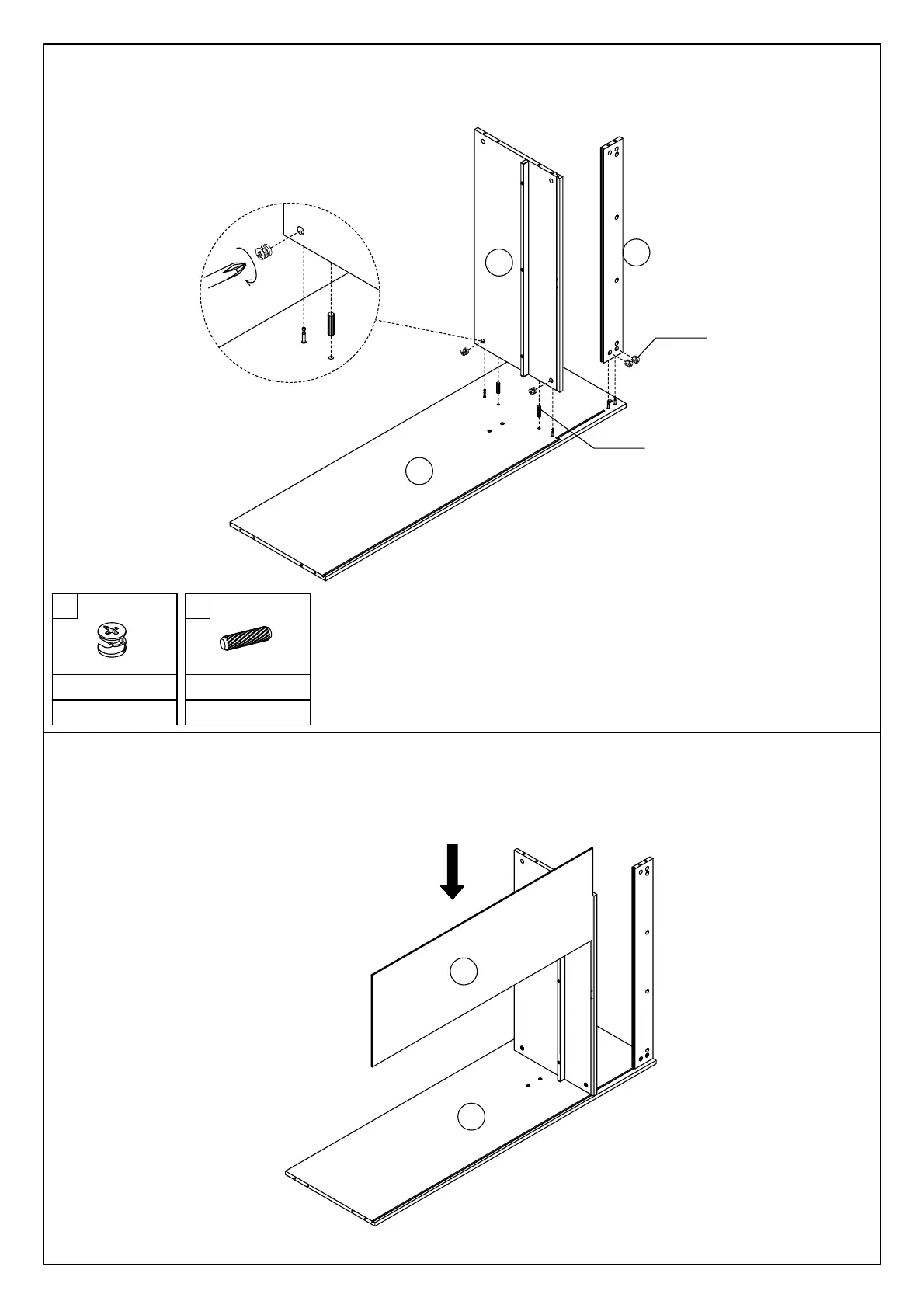 Attach the Shelf Panel and the Back Brace to the Left Side Panel.