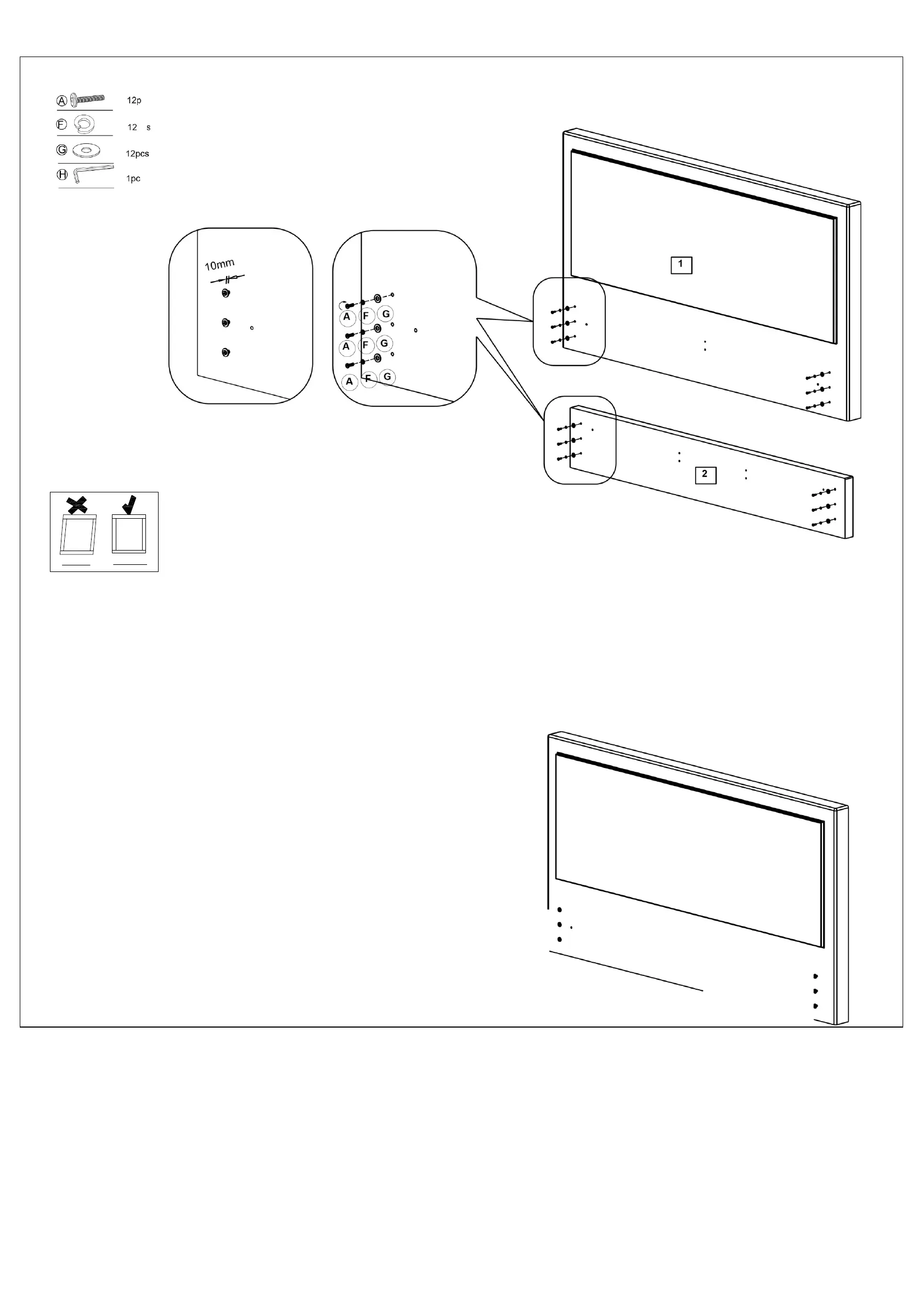 NB: Before tightening the bolts, please ensure the bed frame is square