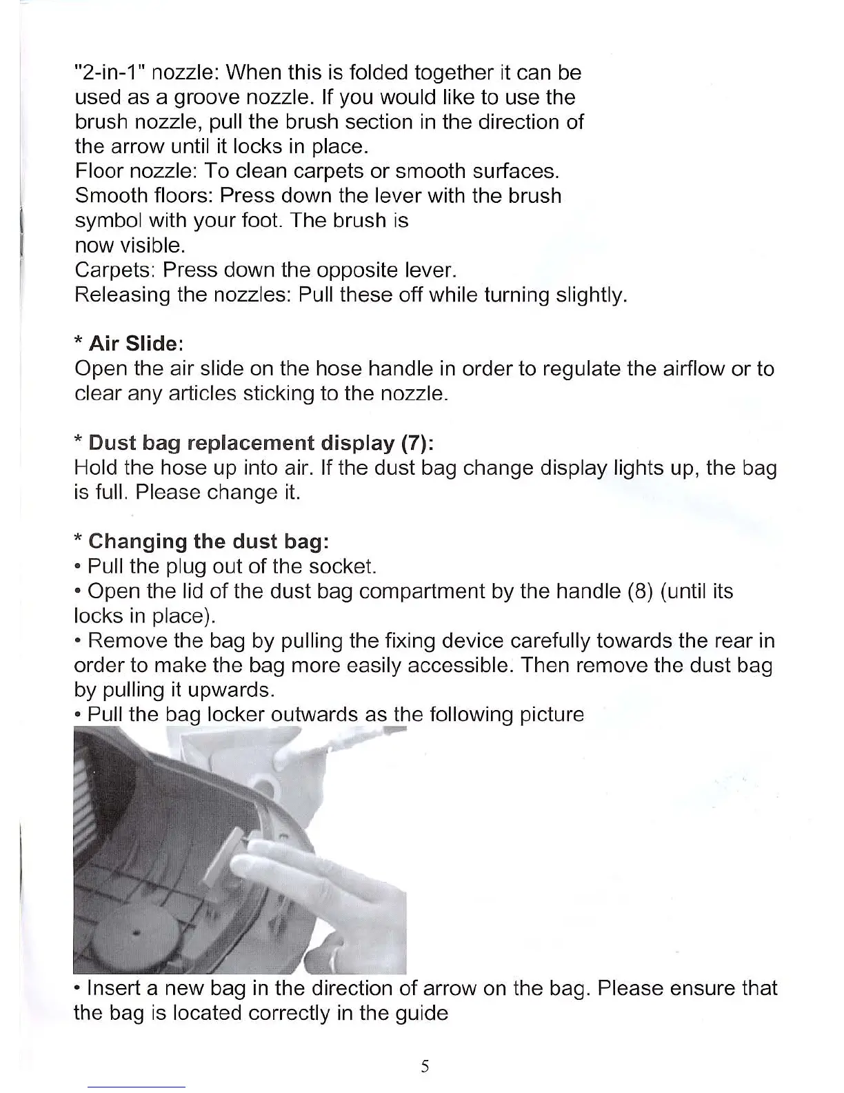 Dust Care DCC-006 Evolution Fireball - Appliance Features; Air Slide Function; Dust Bag Replacement Indicator; Maintenance and Filters