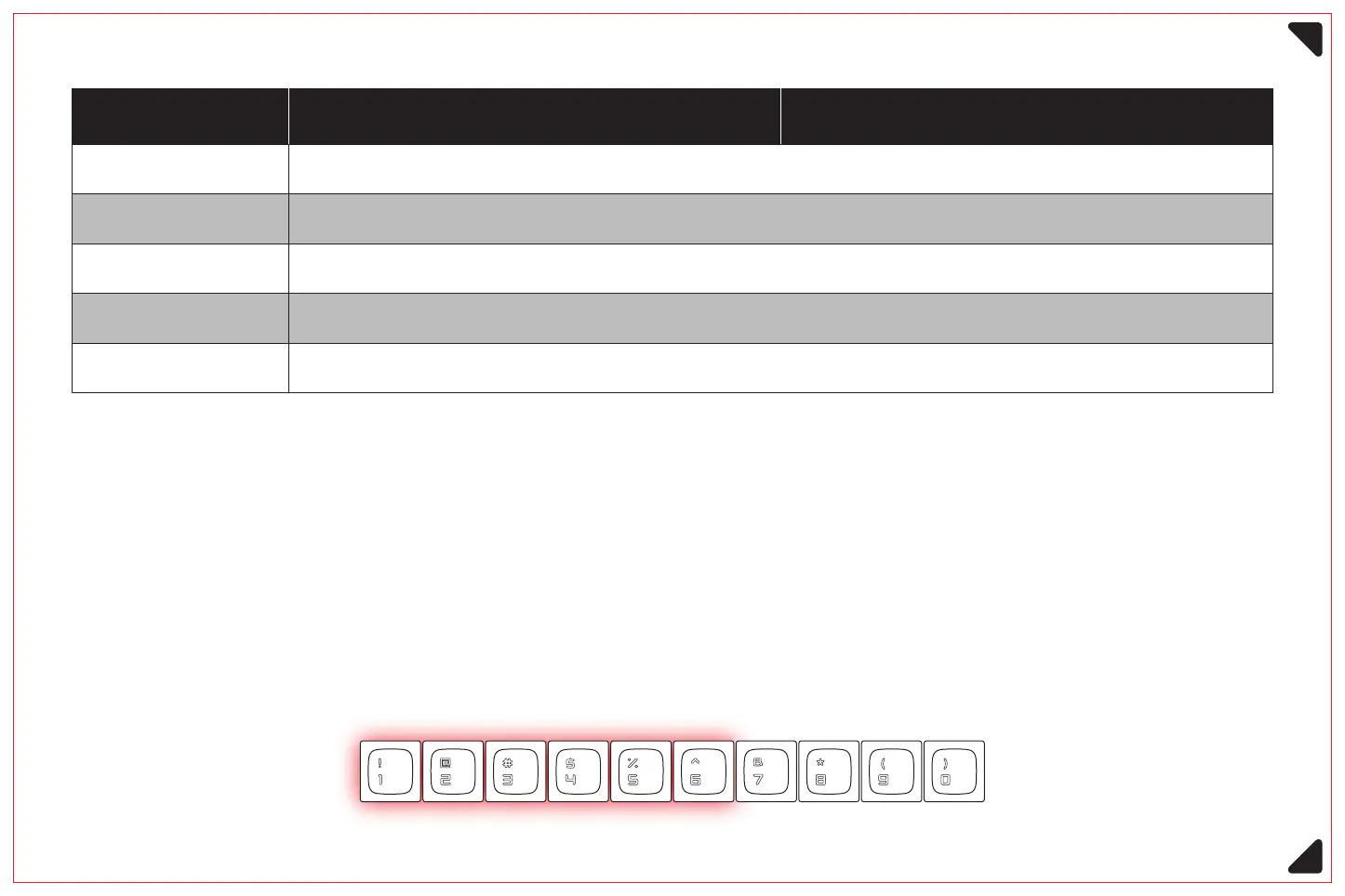 of the number keys '1' to '0' will be on, each number key represents 10% of the battery level.
