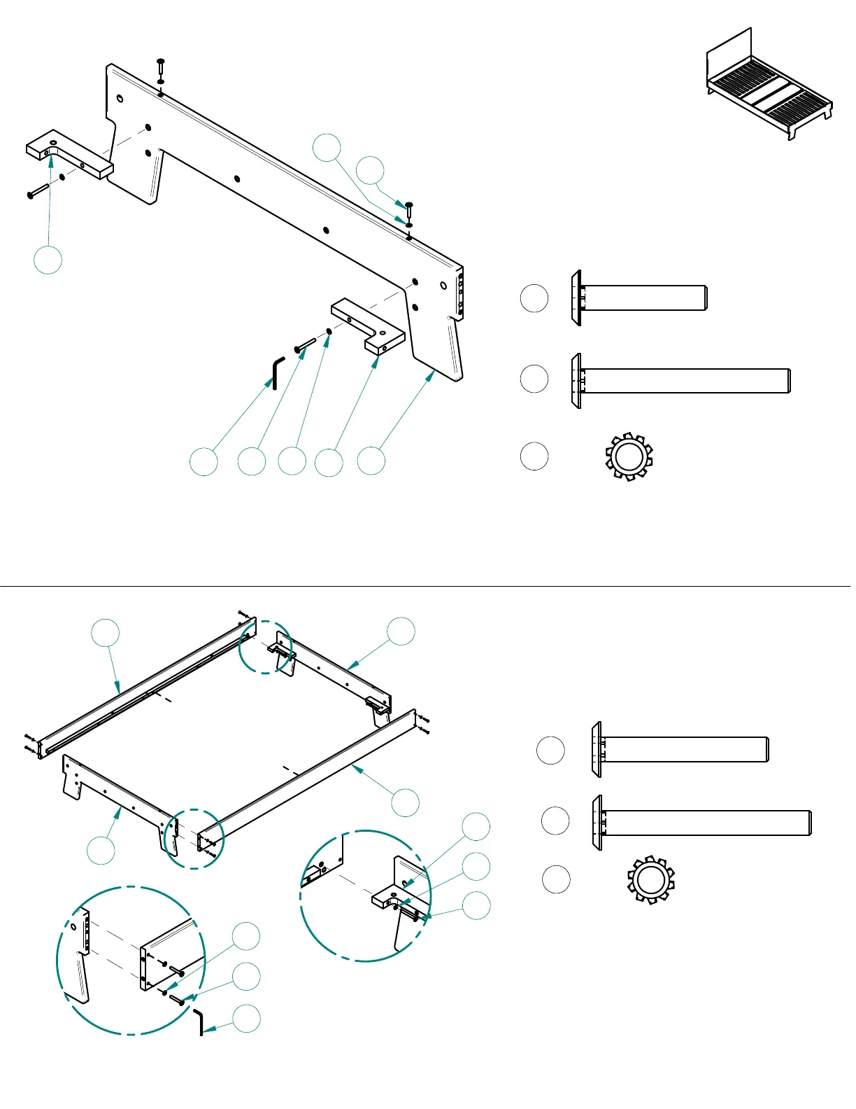 -Install crossbars #12 and #13 to legs #14 by