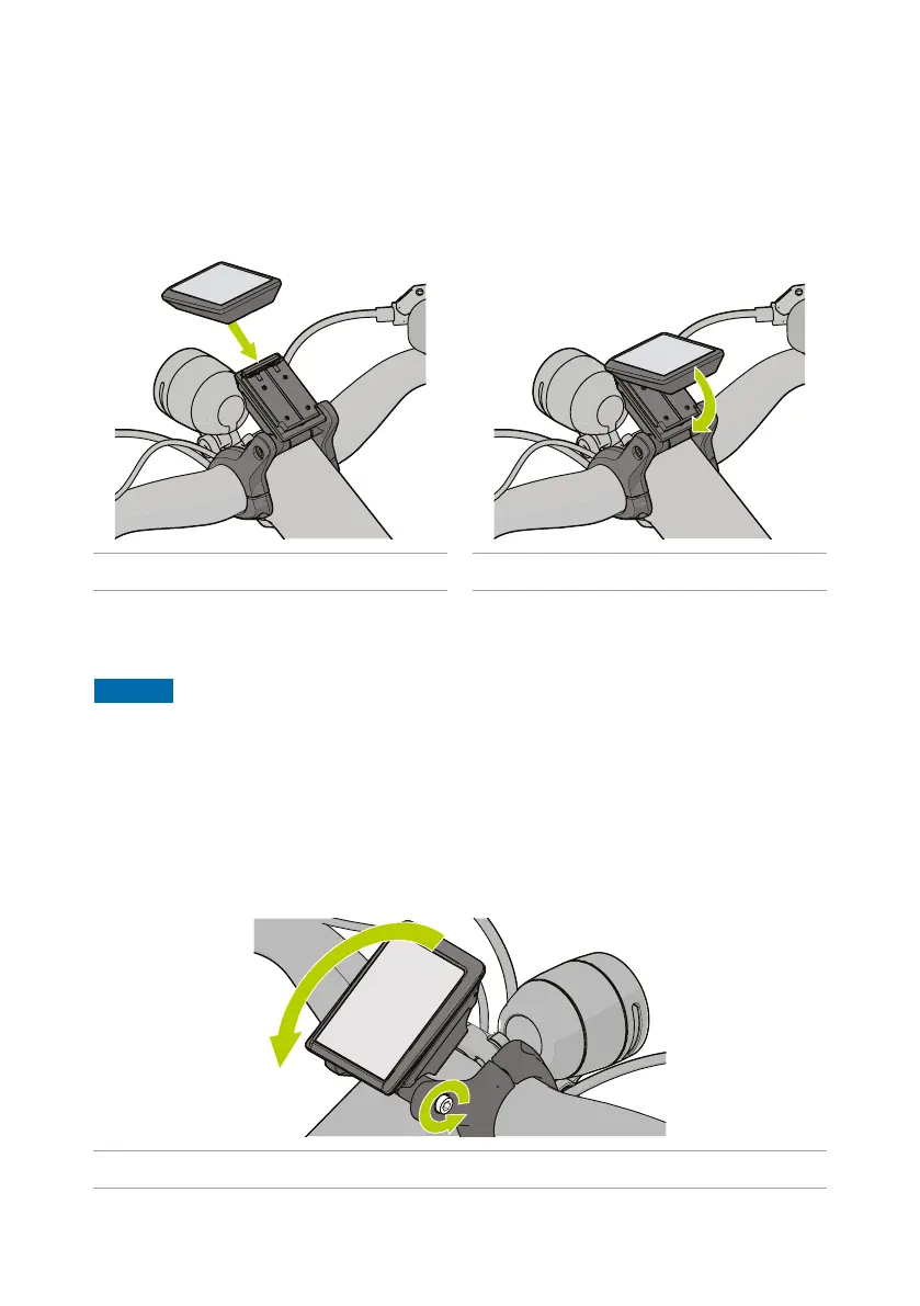1. Haak de boordcomputer 4 met de bovenkant in de houder op het stuur.