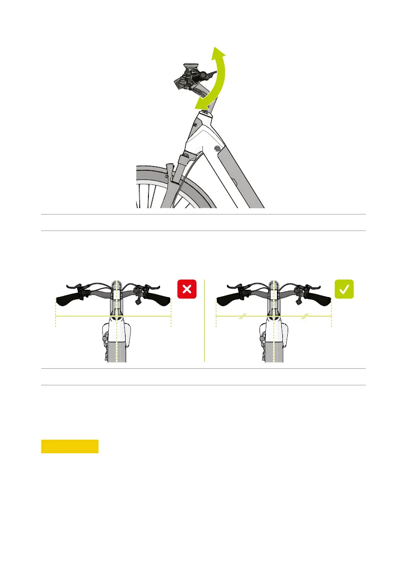 6. Use the markings on the handlebars to check that the handlebars are correctly aligned in the