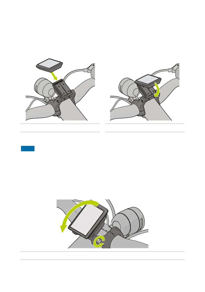 1. Installezl’ordinateurdebord4enplaçantlebordsupérieurdanslesupportsurleguidon.