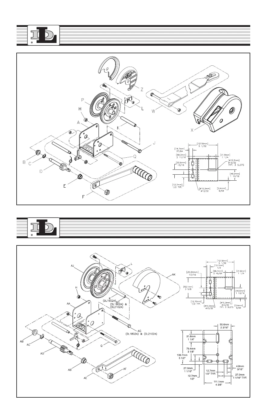 Dutton-Lainson DL1402A - Parts Diagrams; DL1402 A Exploded View; DL1602 A, DL1802 A, DL2102 A Exploded Views