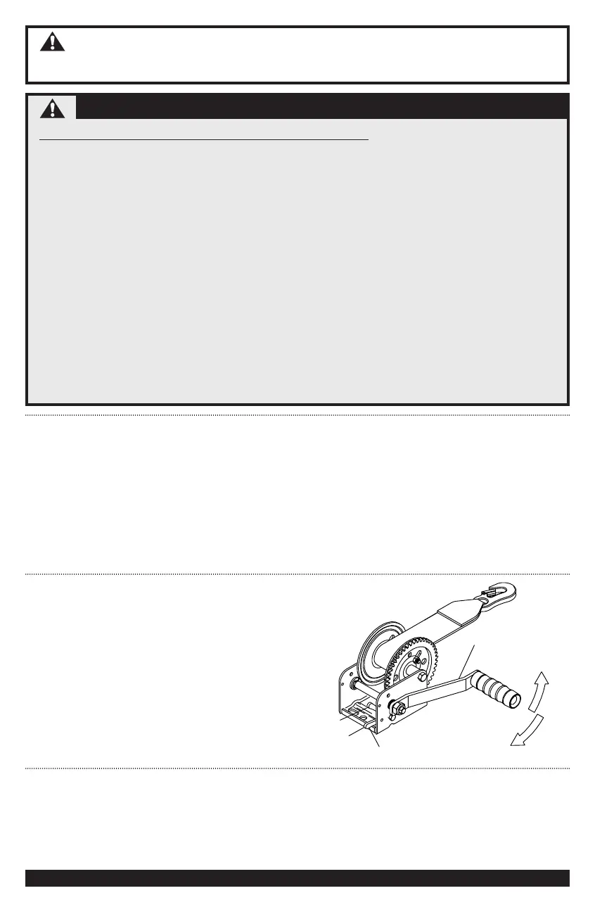 • Operate with hand power only. This winch should not be operated with a motor of any kind. If the winch