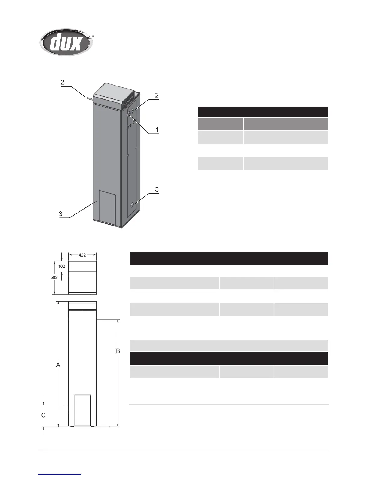 B – Hot Water Outlet 1327 1620
