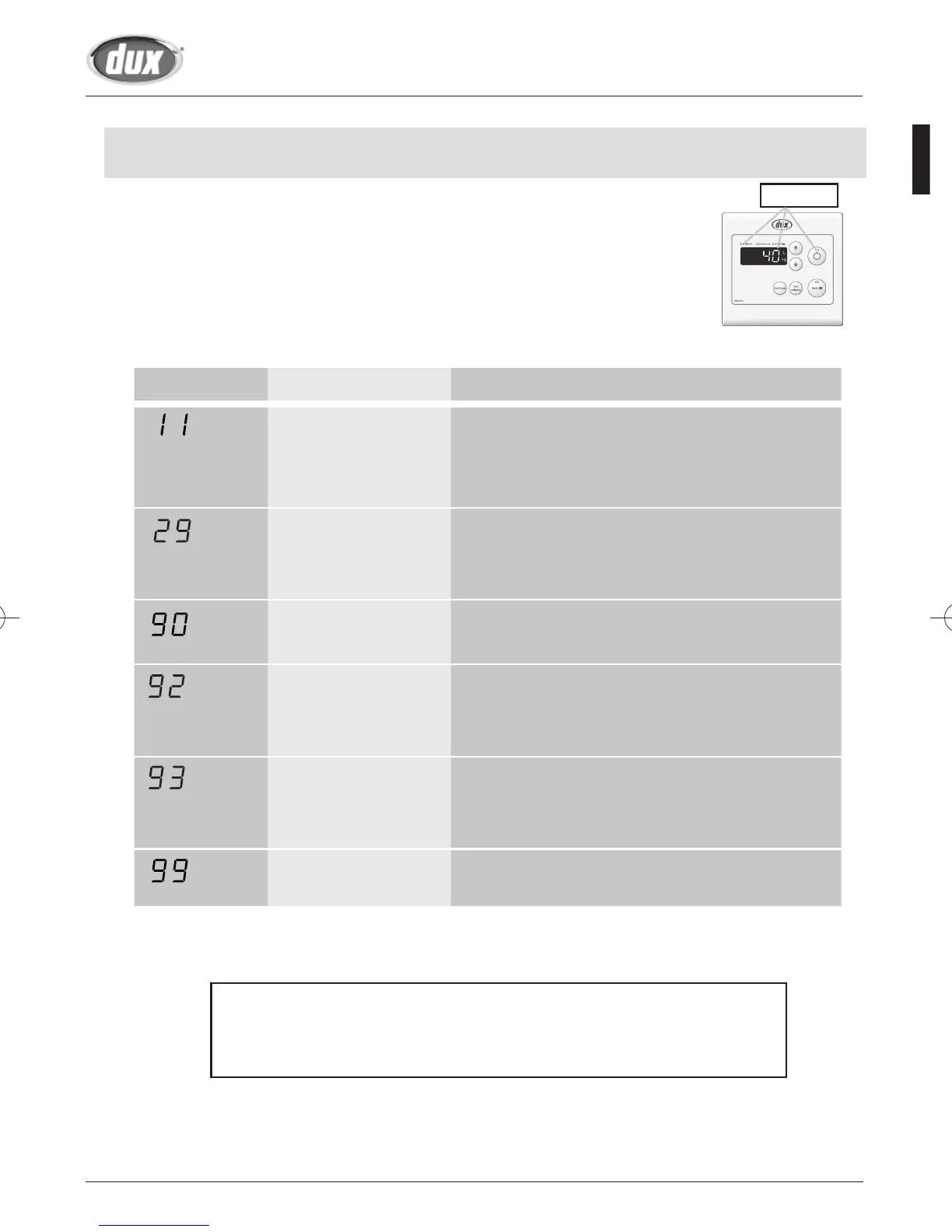 Contact the installer or DUX Service Department for