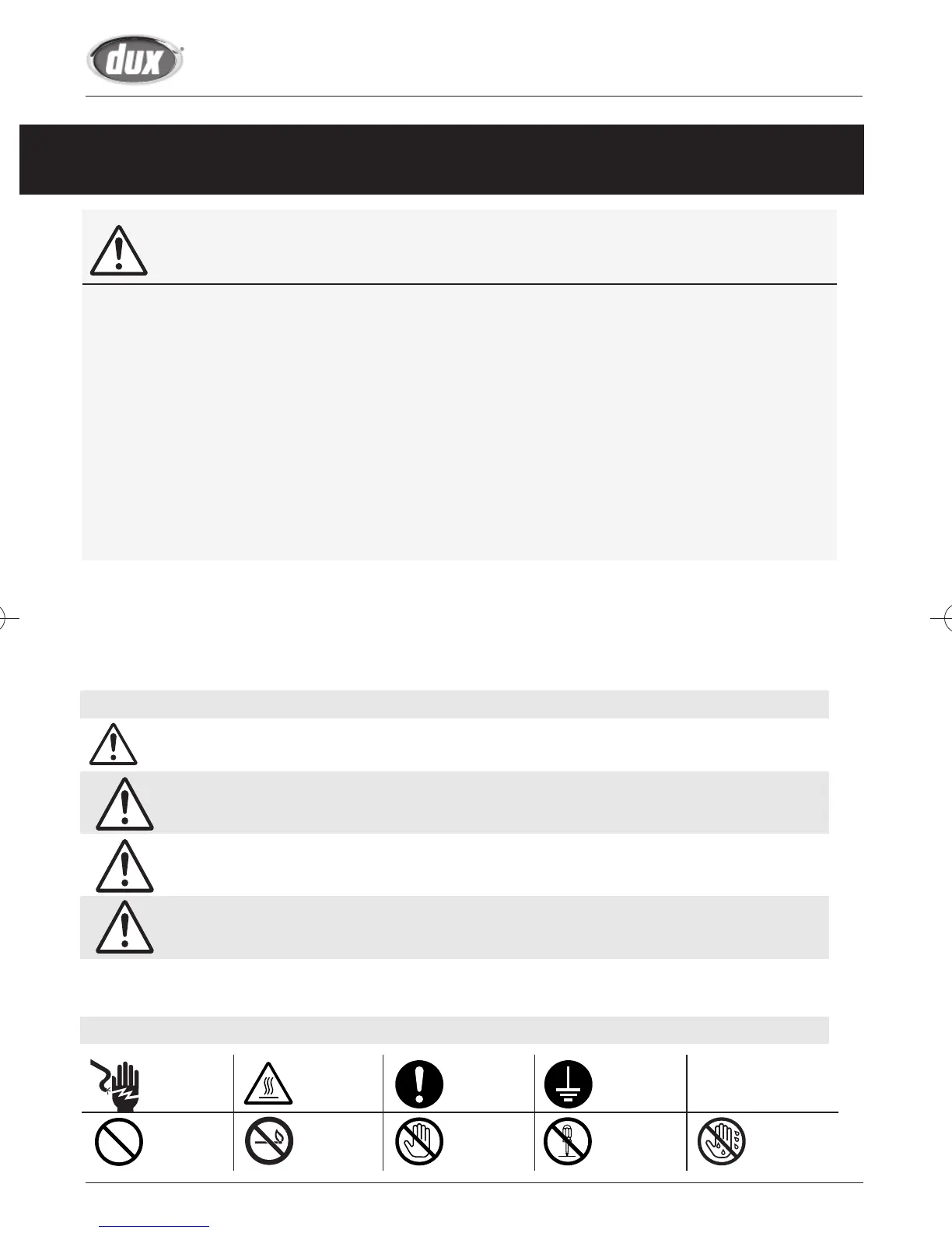 To prevent damage to property and injury to the user, the icons shown below will be used to warn of