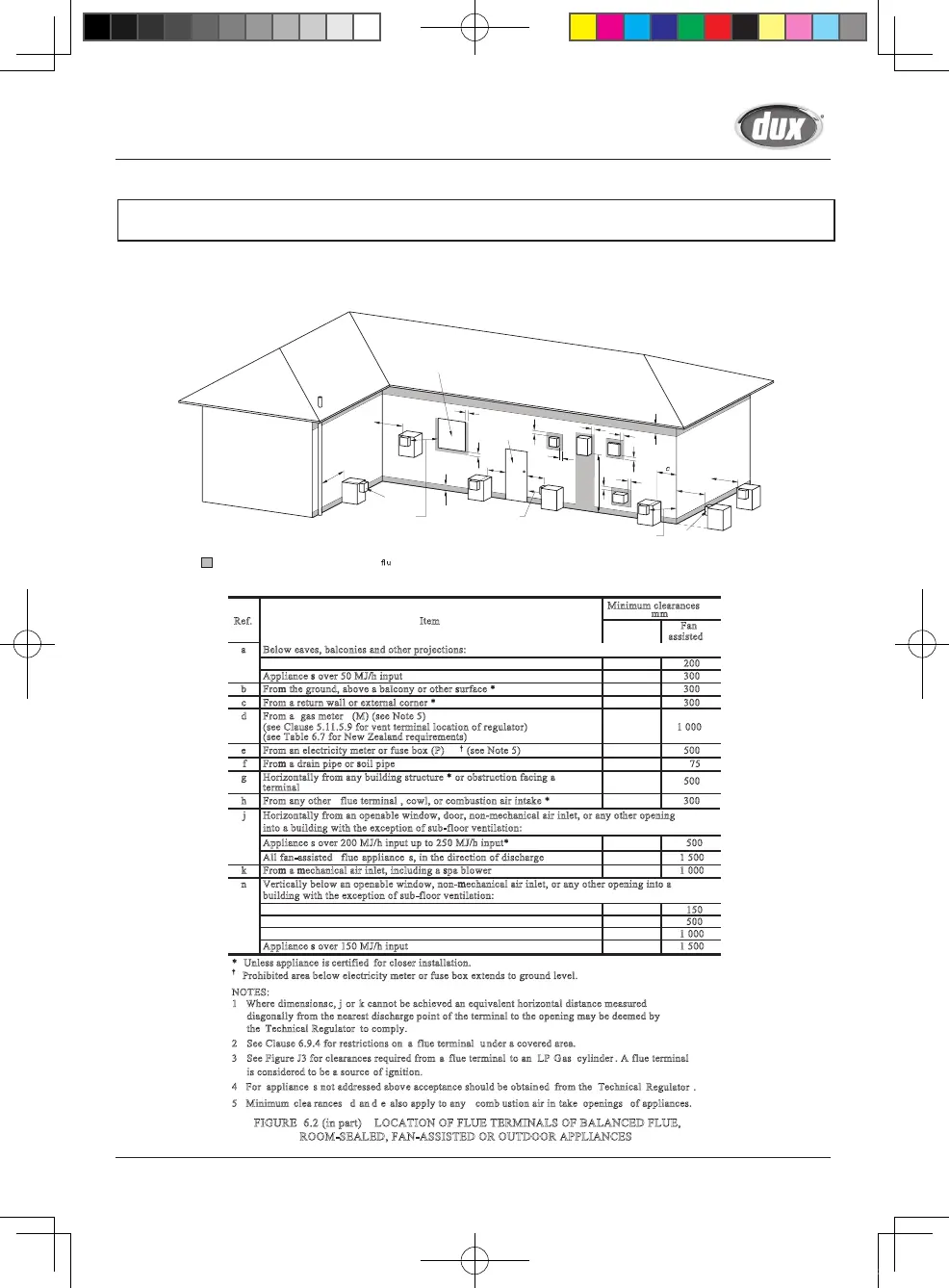 See Clause 6.9.4 for restrictions on a flue terminal u nder a covered area.
