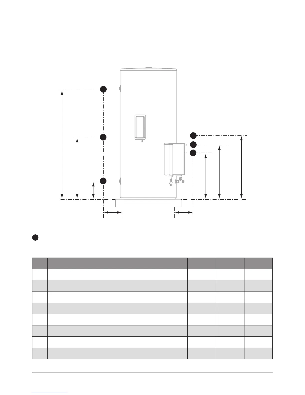 Approximate location of pipework. A tolerance of 25mm is acceptable to dimensions shown in table below.