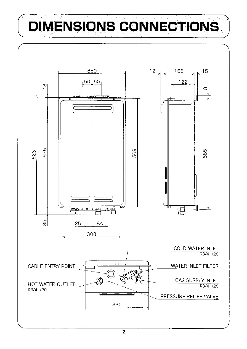 Dux Endurance six - DIMENSIONS AND CONNECTIONS; UNIT DIMENSIONS AND CONNECTION POINTS