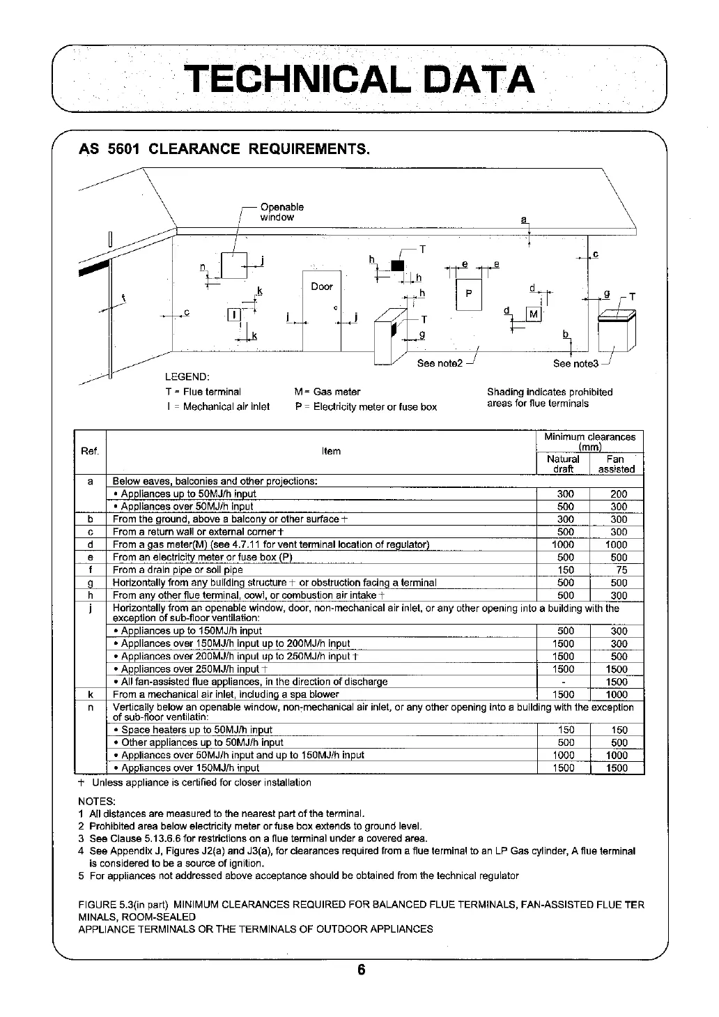 Dux Endurance six - AS 5601 CLEARANCE REQUIREMENTS; MINIMUM CLEARANCES FOR FLUE TERMINALS