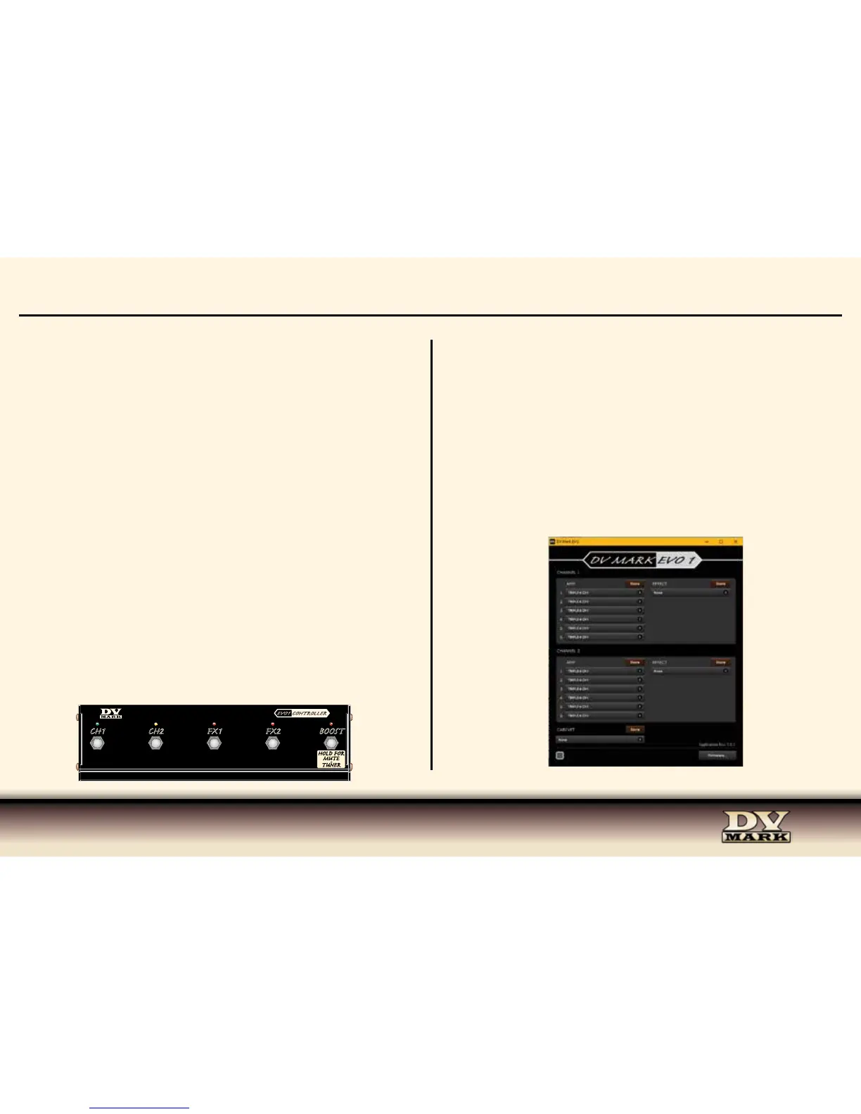 The optional EVO 1 CONTROLLER allows to switch between CH1 / CH2 and turn ON/OFF the FX1, FX2 and BOOST, plus accessing