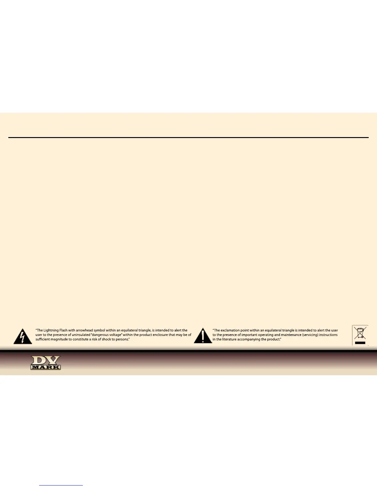“The Lightning Flash with arrowhead symbol within an equilateral triangle, is intended to alert the user to the presence of uninsulated “dangerous voltage” within the product enclosure that may be of