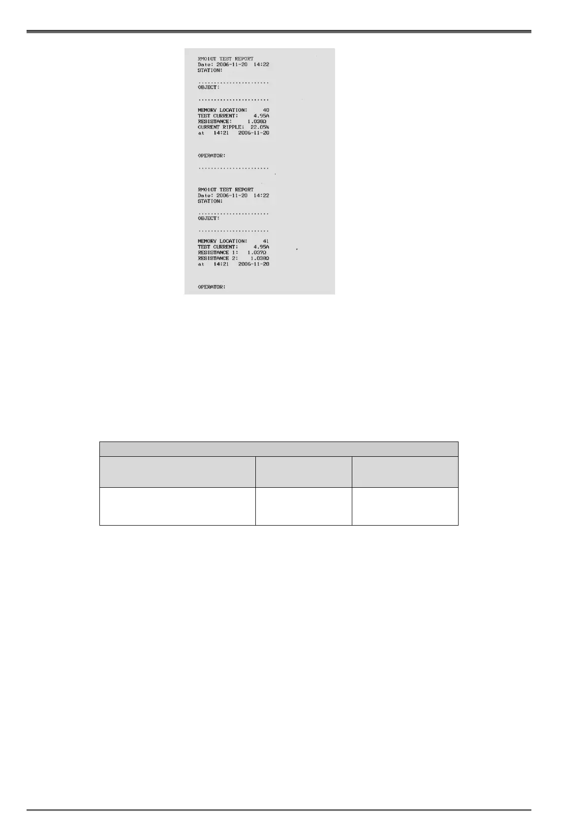 Settings of the printer as well as look of the RMO40TD Test Report are given at figure above.