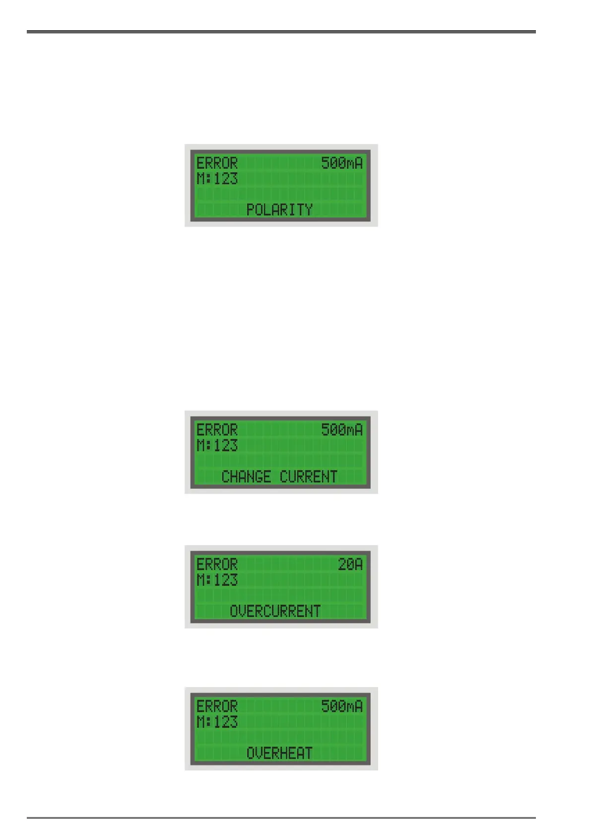 that resistance error message vercurrent on the display. Red LED will light continuously.