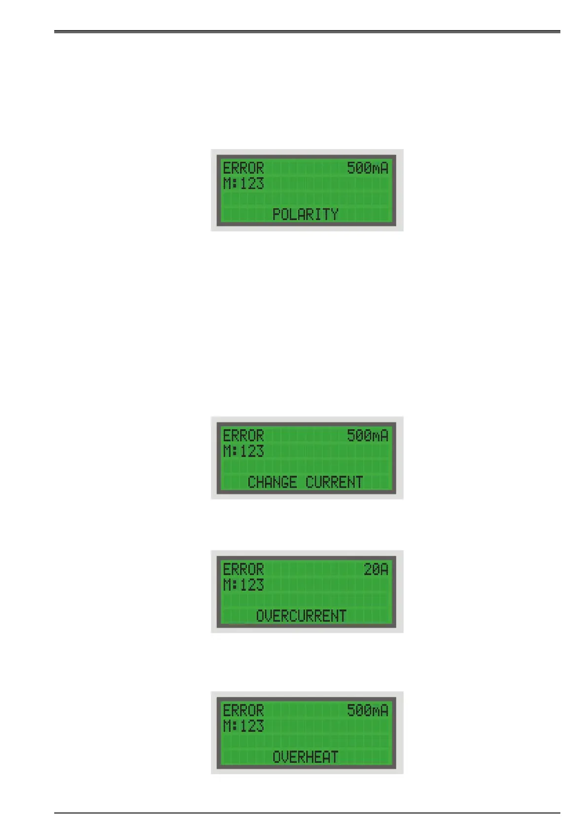that resistance error message „Overcurrent“ is shown on the display. Red LED will light continuously.