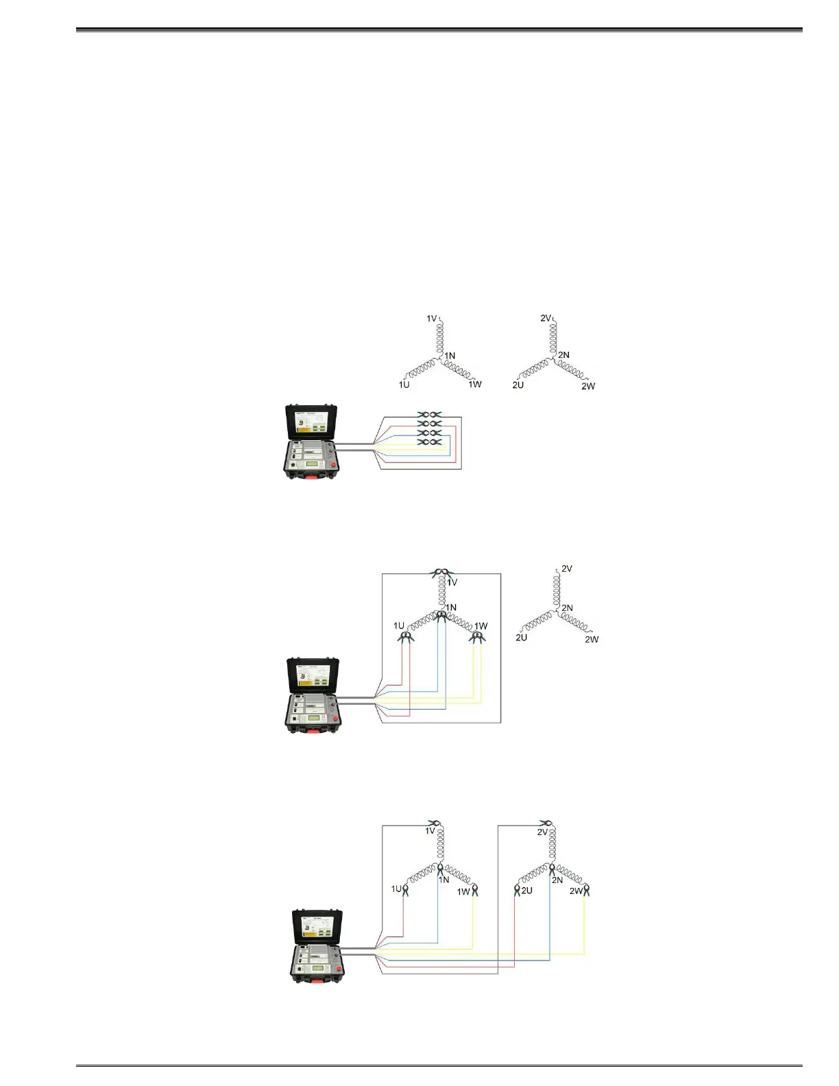 1. Disconnect all test cables from the transformer side. Connect the primary side clamps (red color marked)