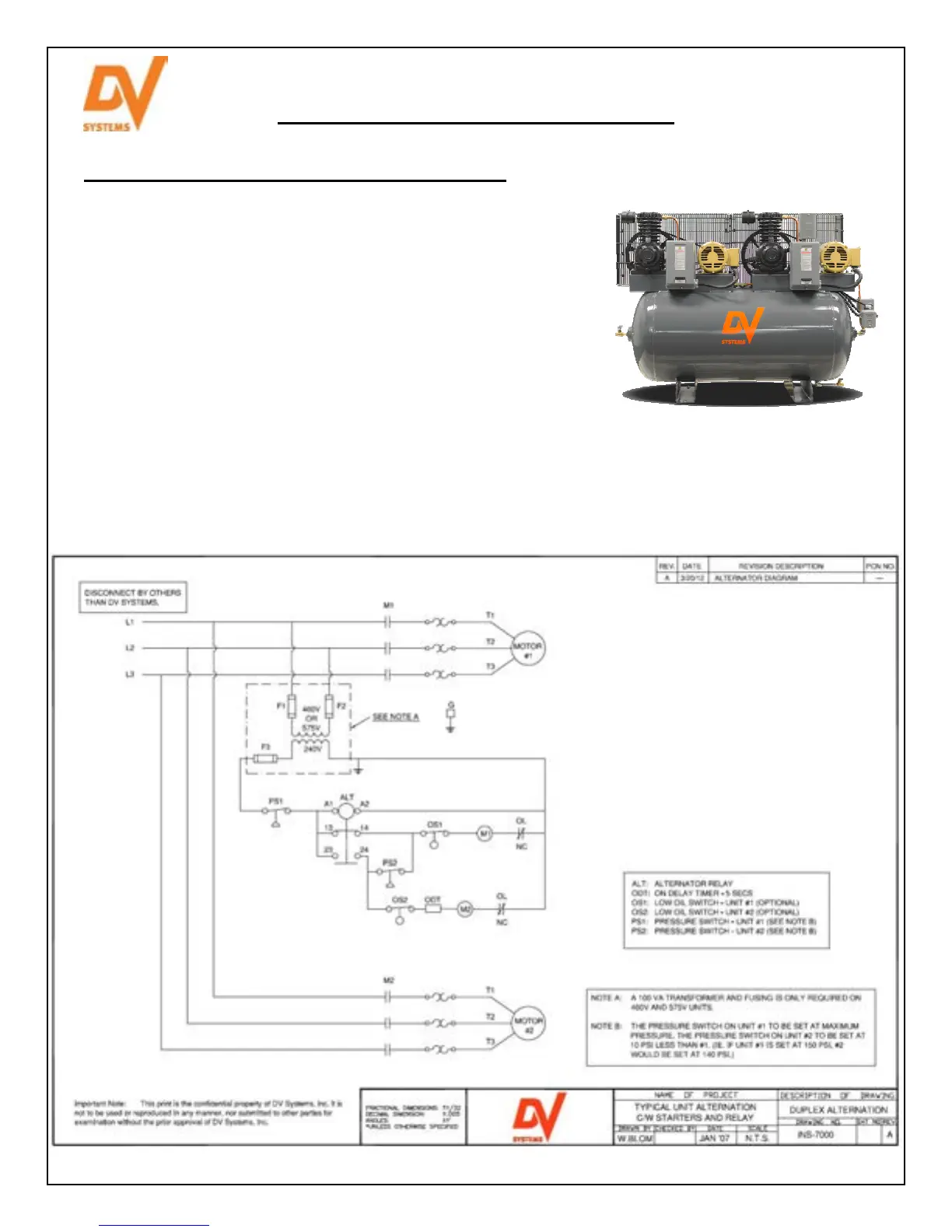 Shown below is a typical schematic for a Duplex Unit c/w (2) Magnetic Starters and Alternator Relay.