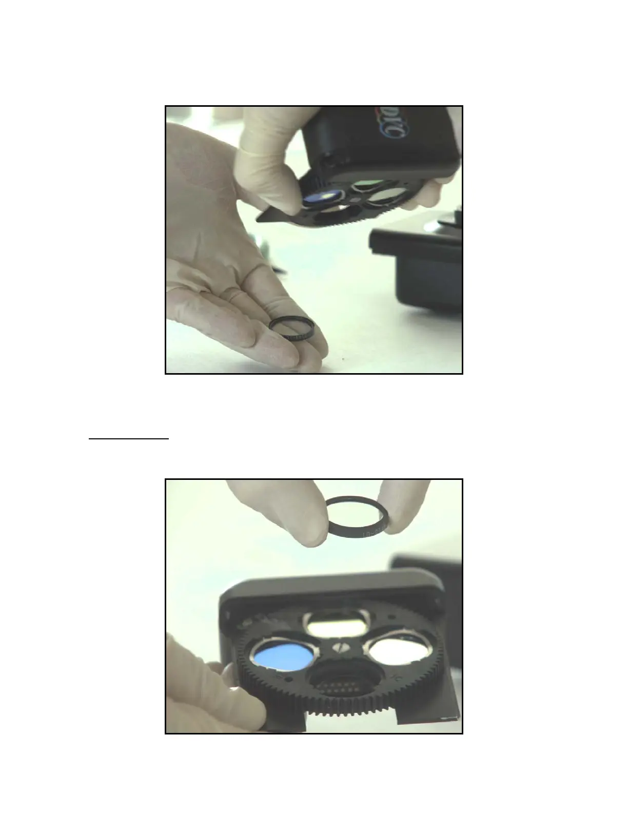 5) Place a clean surface lens paper where you want the filter to fall upon. Turn the module up