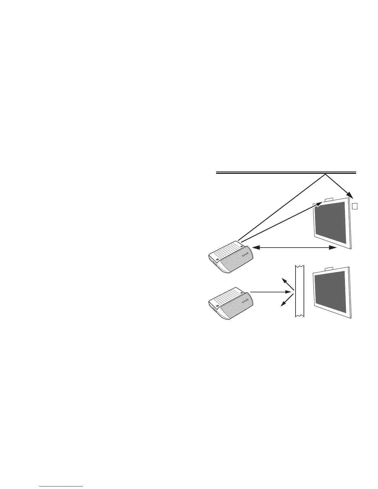 • The signal bounces off walls/ceiling