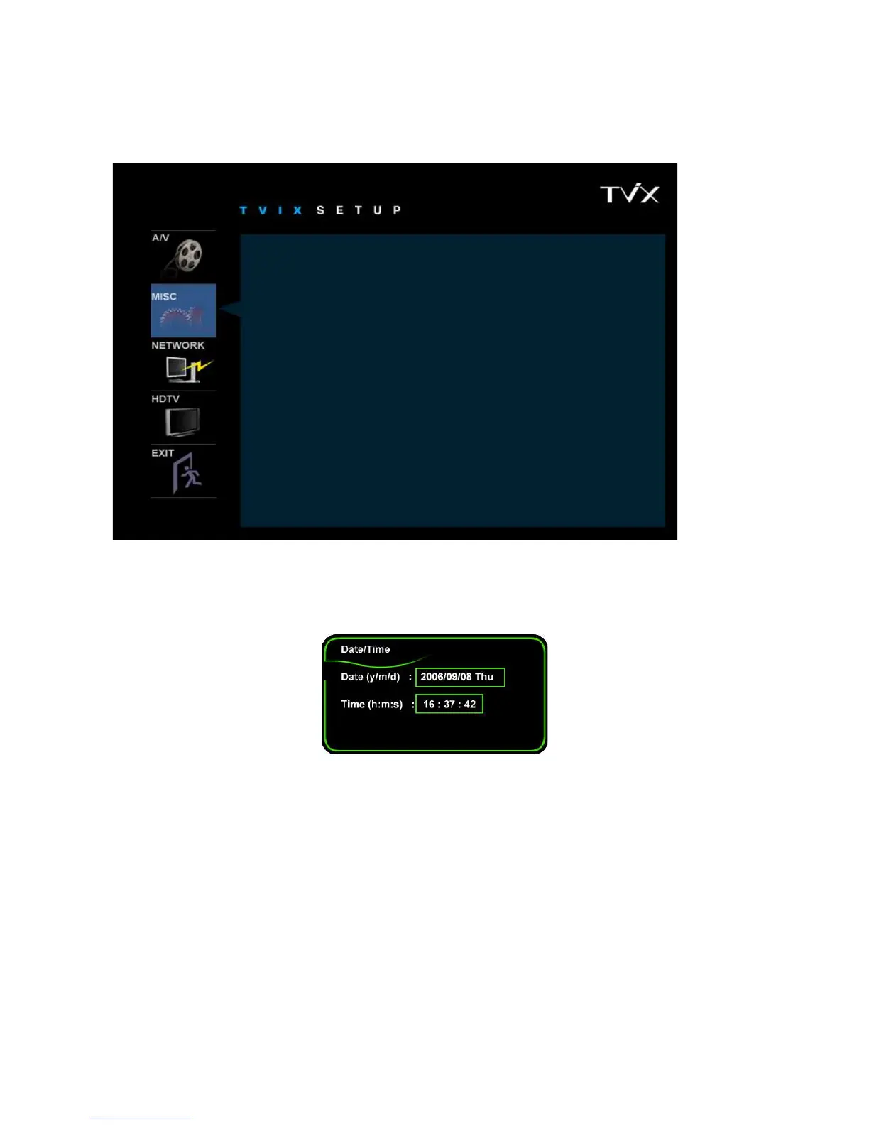 * Screen Saver : If there is tvix_ss.jpg on the root directory, you can see this image(160*160 pixel) after 2~3